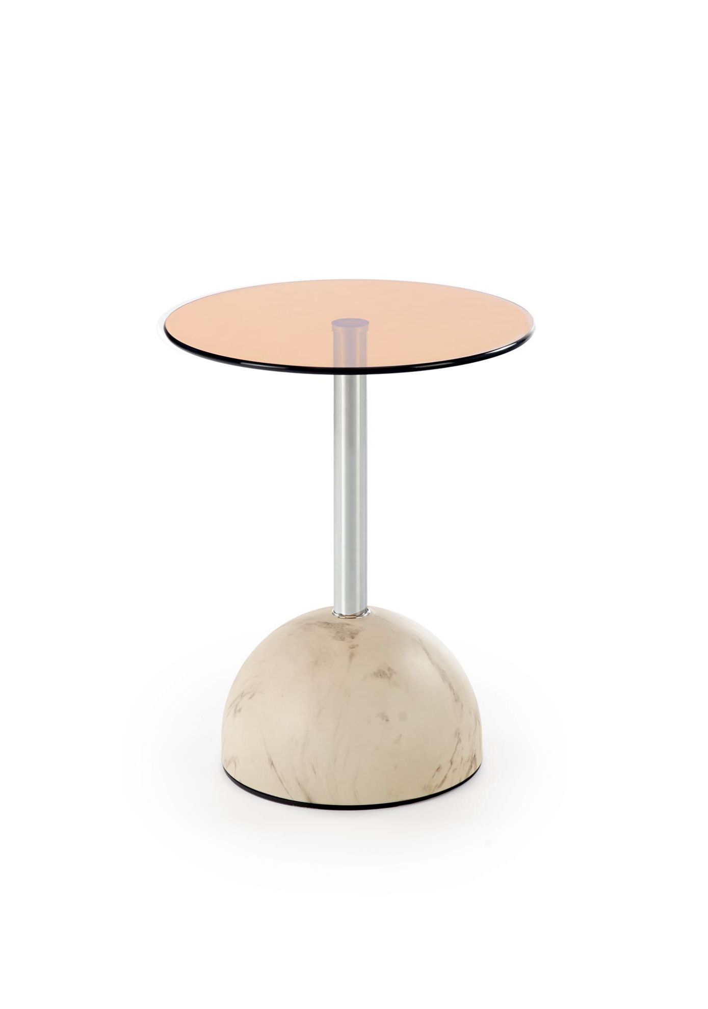 Ława Miro beżowy marmur to stylowy stolik kawowy, który doskonale uzupełnia aranżacje salonu, pokoju dziennego oraz przestrzeni wypoczynkowych. Model wyróżnia się harmonijnym połączeniem szlachetnego beżowego marmuru z brązowym szkłem, co nadaje meblowi elegancki i designerski wygląd. Kompaktowe wymiary fi 40 cm oraz wysokość 51 cm sprawiają, że ława świetnie sprawdzi się zarówno jako stolik pomocniczy, jak i funkcjonalny stolik kawowy do mniejszych oraz większych wnętrz. Stabilna konstrukcja została wykonana ze stali malowanej proszkowo, dzięki czemu ława Miro zachowuje trwałość i estetyczny wygląd przez długi czas użytkowania.