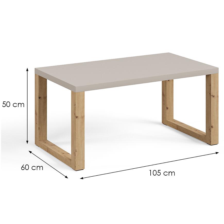 Nowoczesna ława Mona 1050 w kolorze kaszmir/artisan to połączenie elegancji i praktyczności w salonie. Wykonana z trwałej płyty wiórowej laminowanej z matowym wykończeniem, posiada prostokątny blat o wymiarach 105 × 60 × 50 cm oraz dodatkową półkę na drobiazgi. Stylowa kombinacja beżu i jasnego drewna doskonale komponuje się z różnymi aranżacjami wnętrz. Wymaga złożenia.