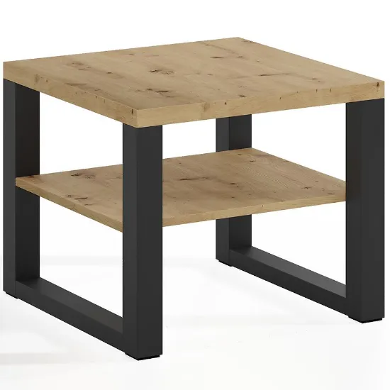 Nowoczesna ława Mona 600 z półką w kolorze artisan/czarny to praktyczny i stylowy element wyposażenia salonu. Wyposażona w dodatkową półkę, oferuje wygodne miejsce na drobiazgi lub prasę. Wykonana z płyty wiórowej laminowanej, posiada matowy blat o prostokątnym kształcie, odporny na codzienne użytkowanie. Dzięki kompaktowym wymiarom (60 × 60 × 50 cm) świetnie sprawdzi się zarówno w mniejszych, jak i większych wnętrzach.