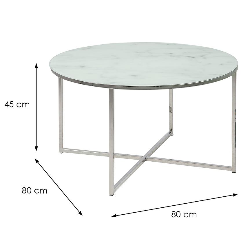 Okrągły kształt blatu sprawia, że mebel łatwo wpisuje się w różne aranżacje wnętrz, nadając przestrzeni harmonijnego charakteru.
