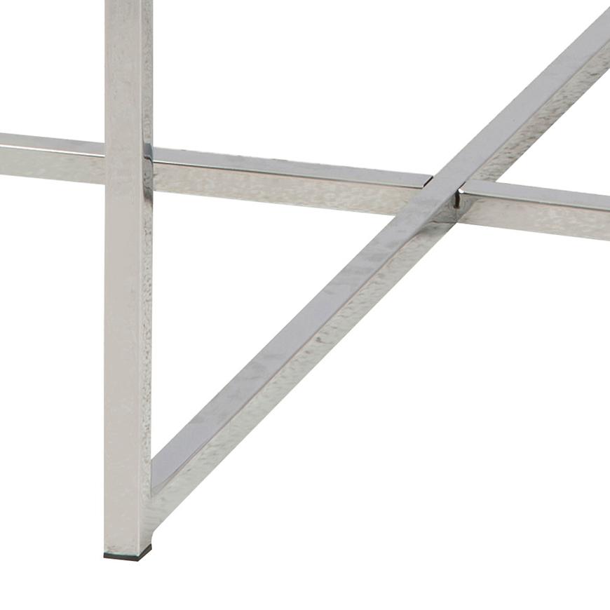 Materiał blatu - szkło, sprawia, że ława prezentuje się nowocześnie i jest łatwa w utrzymaniu czystości. Metalowy stelaż gwarantuje solidność i trwałość mebla, a jednocześnie stanowi nowoczesny element dekoracyjny.
