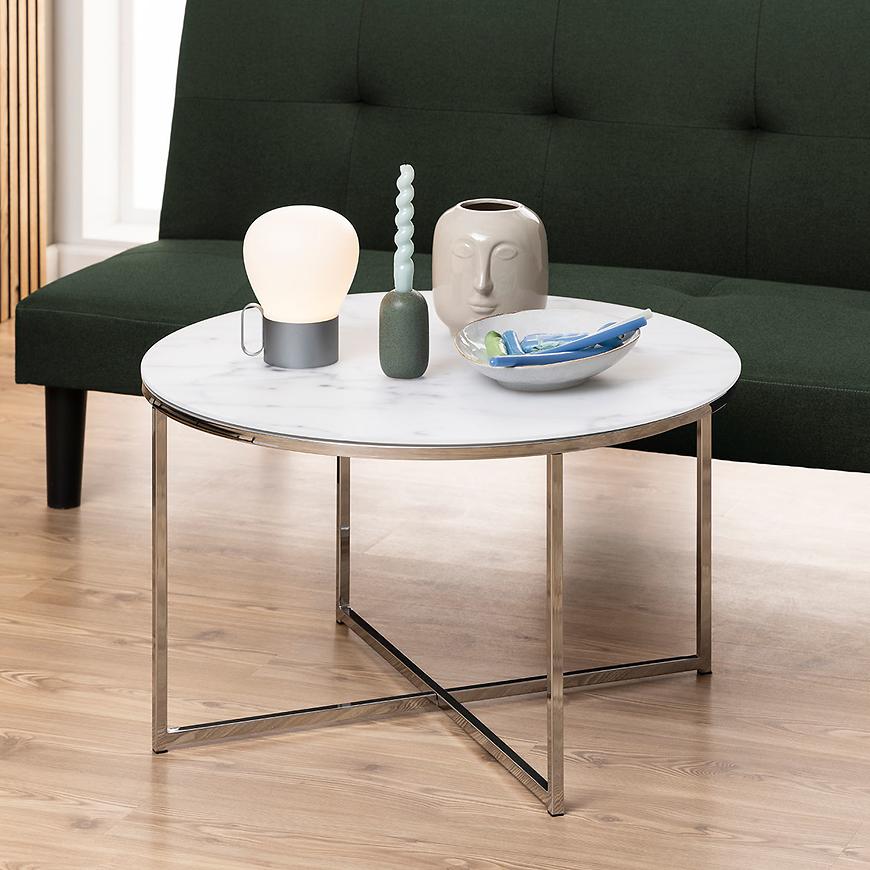 Ława Mona Marmur to mebel, który doskonale komponuje się w nowoczesnych wnętrzach, dodając im elegancji i subtelności. Matowe wykończenie blatu podkreśla minimalistyczny charakter, a szkło nadaje lekkości całej konstrukcji.