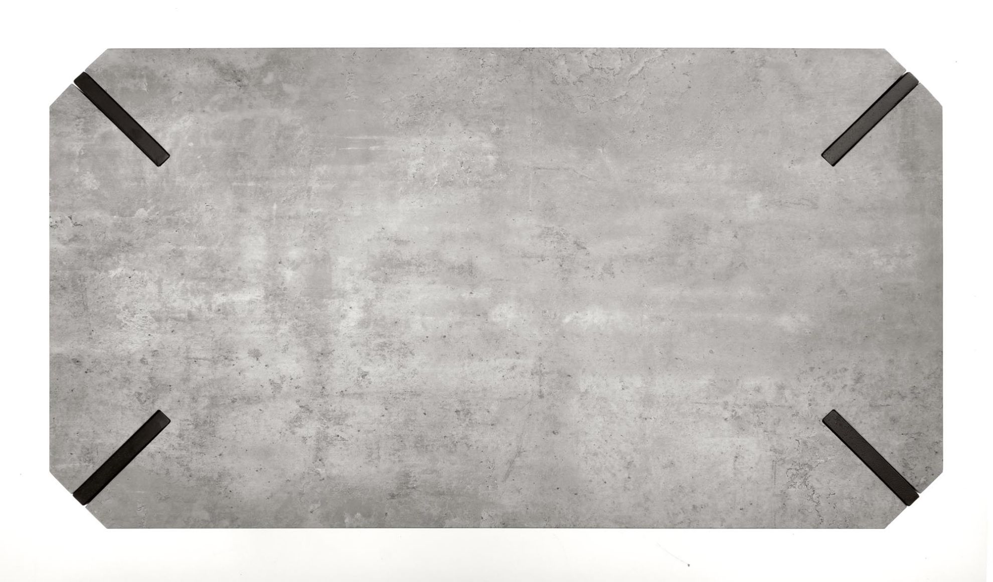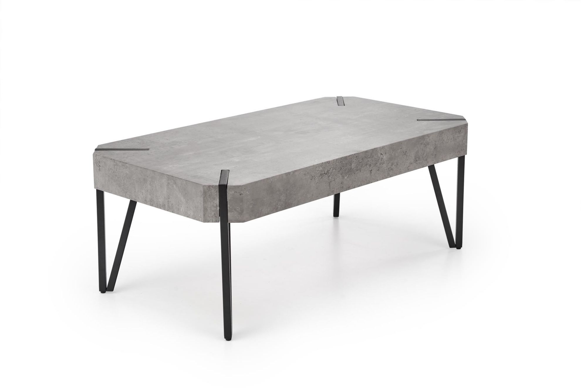 Blat ławy wykonano z trwałego MDF okleinowanego w kolorze betonu, który wprowadza do wnętrza modny, industrialny charakter. Stabilną podstawę stanowią nogi ze stali malowanej proszkowo na czarno, które nie tylko zapewniają solidność konstrukcji, ale także podkreślają nowoczesny styl mebla.