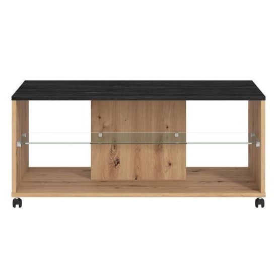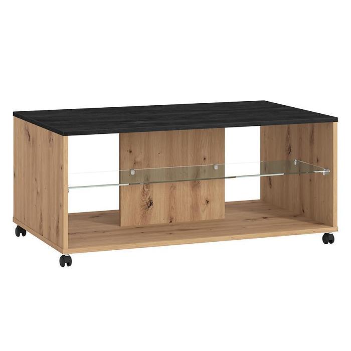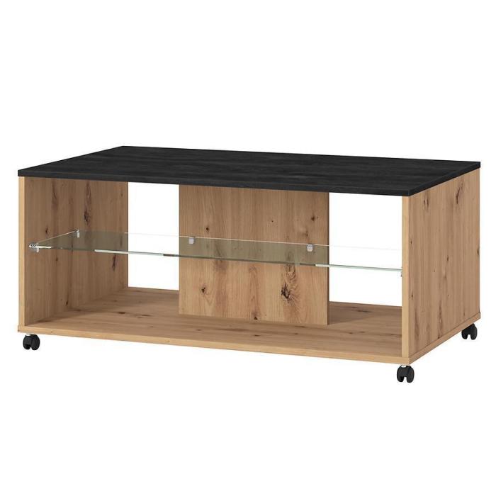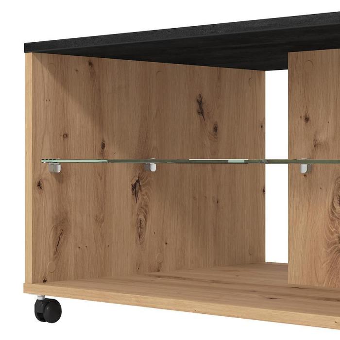 Doskonale sprawdzi się w salonie lub innym, dowolnym pomieszczeniu. Wykonana jest w całości z płyty wiórowej laminowanej.