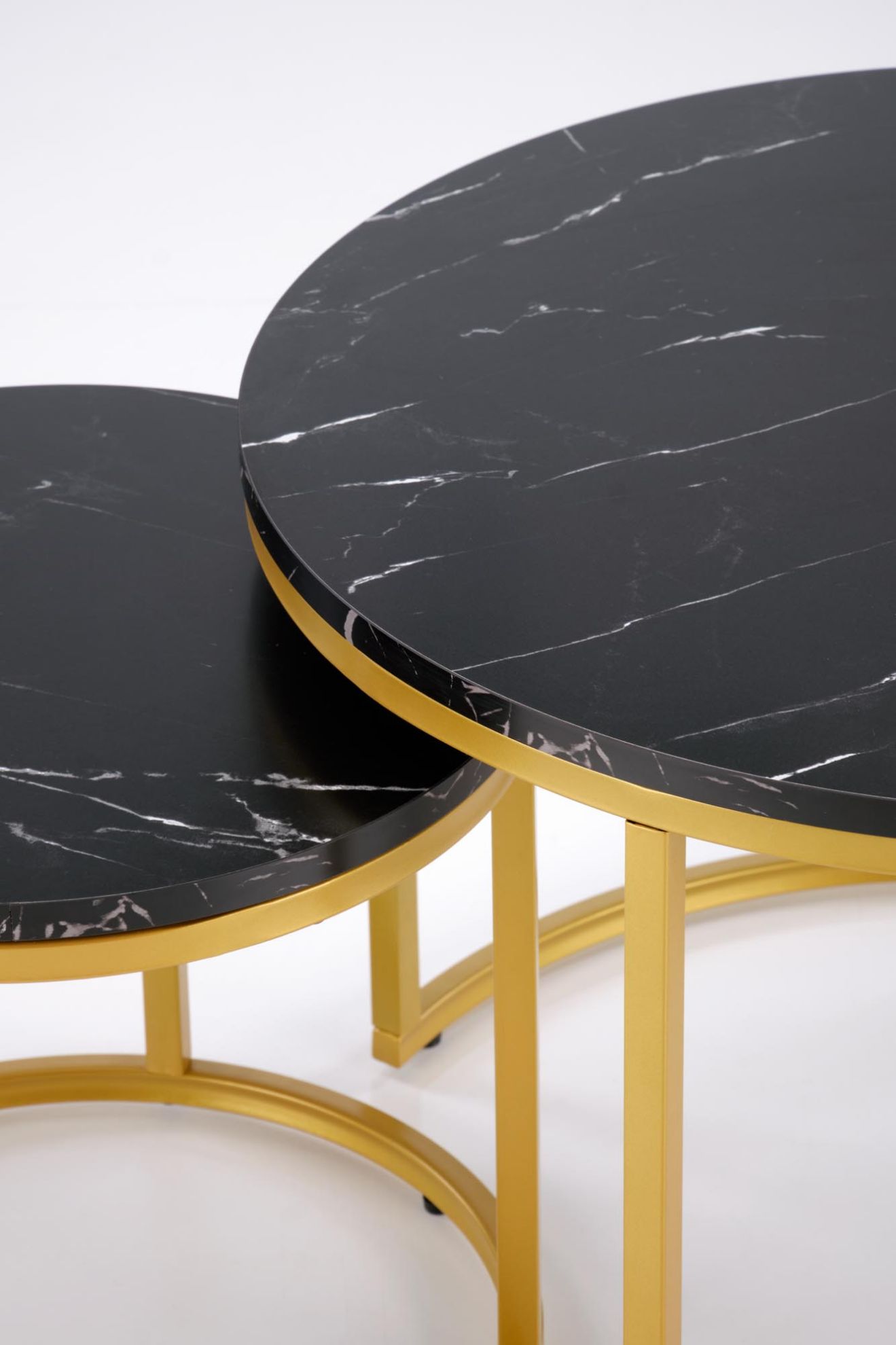 Marmurowe blaty tworzą harmonijne połączenie z innymi elementami wystroju, wprowadzając do wnętrza elegancką atmosferę. Konstrukcja ławek wykonana jest ze stali malowanej proszkowo, która gwarantuje trwałość, stabilność i nowoczesny wygląd. Kolor złoty doskonale komponuje się z marmurem, tworząc kontrastowy i designerski efekt