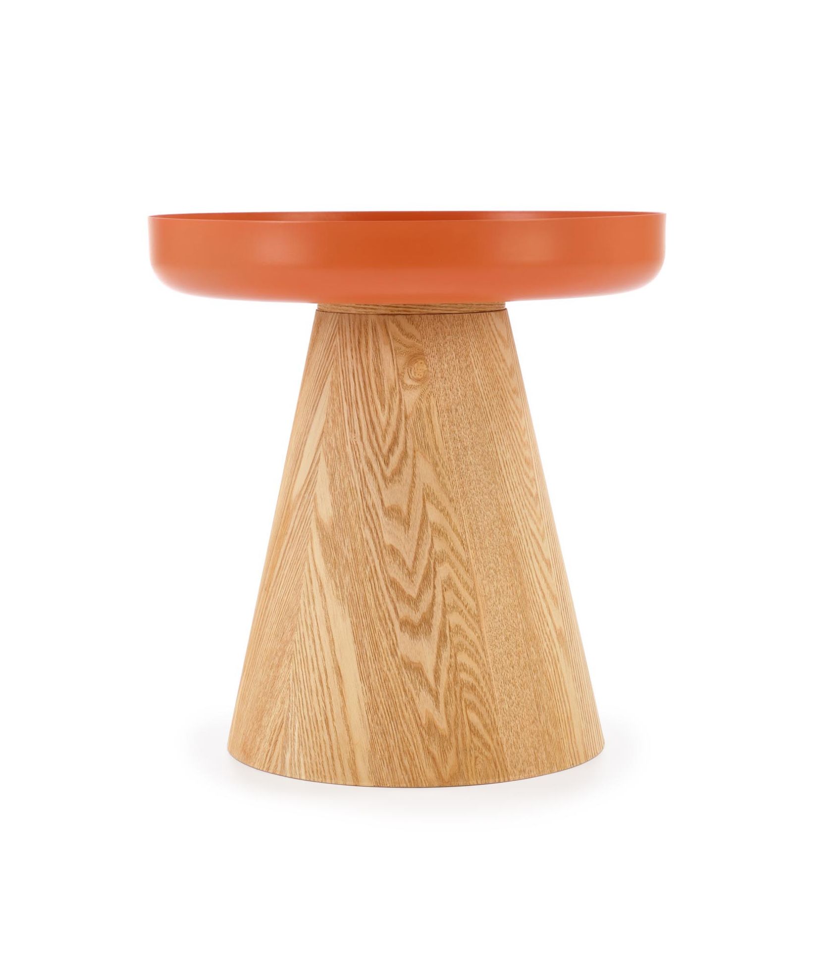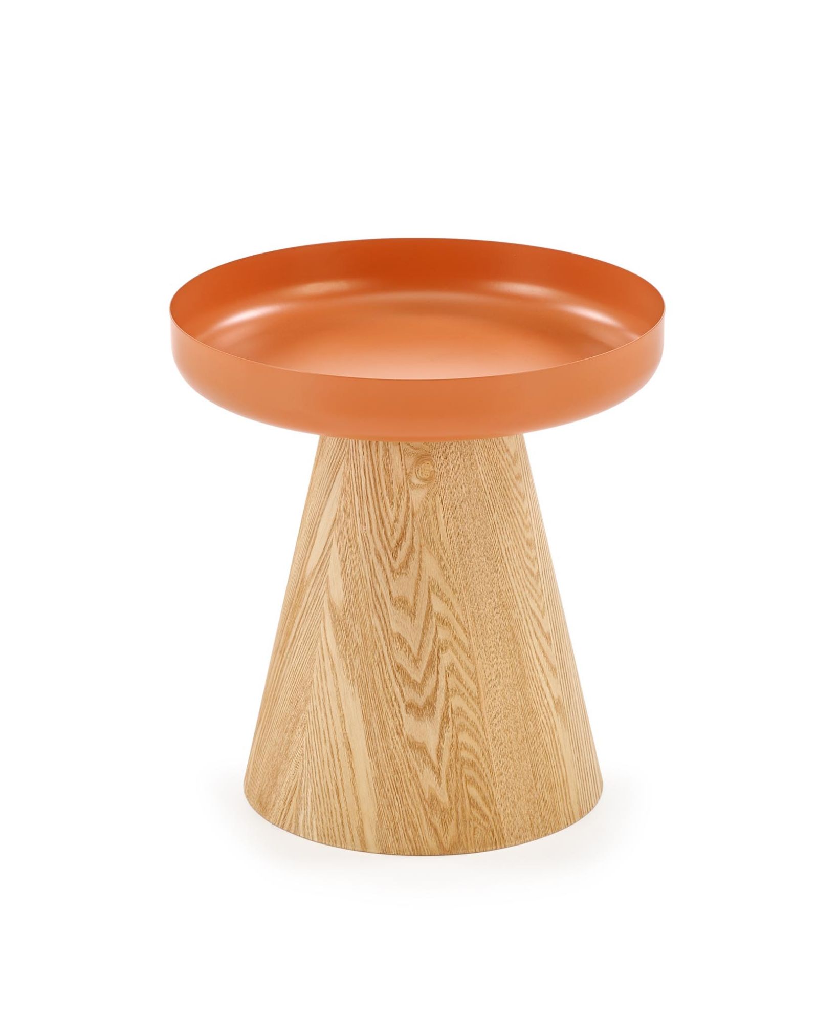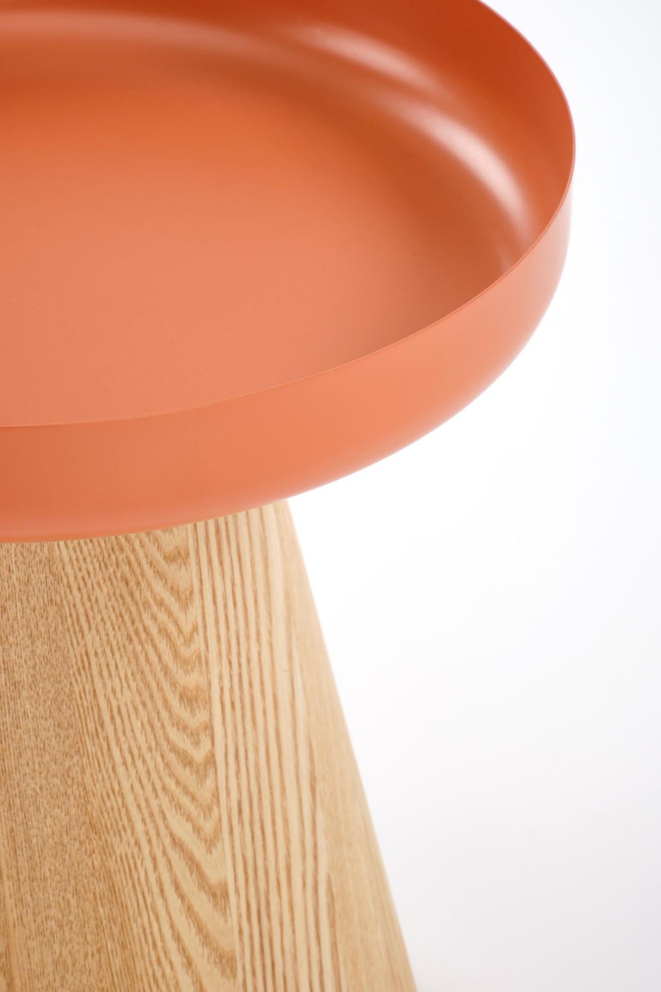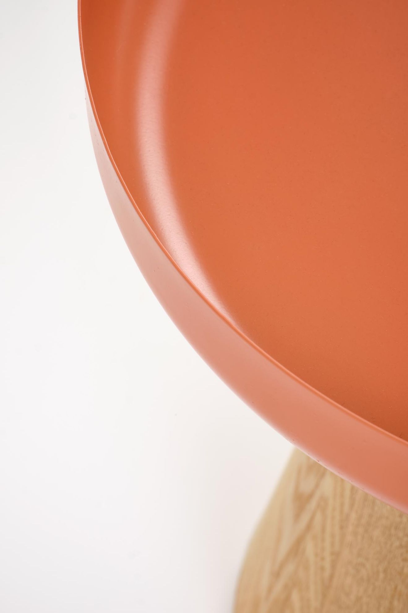 Dzięki kompaktowym wymiarom fi 40/42 cm ława Persi sprawdzi się zarówno w małych, jak i większych salonach. Połączenie stali malowanej proszkowo i naturalnego MDF zapewnia stabilność oraz łatwość utrzymania czystości. Ciepły cynamonowy kolor blatu harmonizuje z drewnianymi, naturalnymi akcentami wnętrz, tworząc przytulną przestrzeń do spotkań i relaksu.