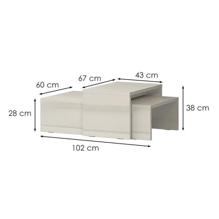 Cena zawiera dwa stoliki o wymiarach 28x60x102 i 38x67x43