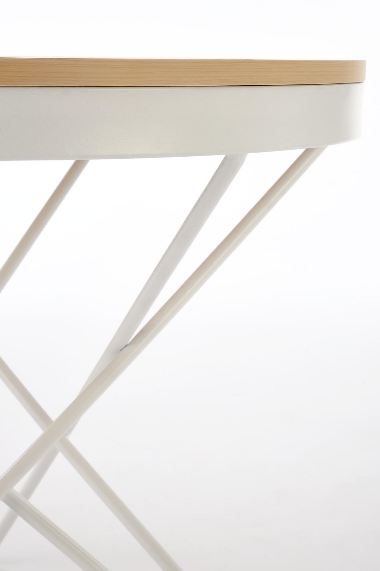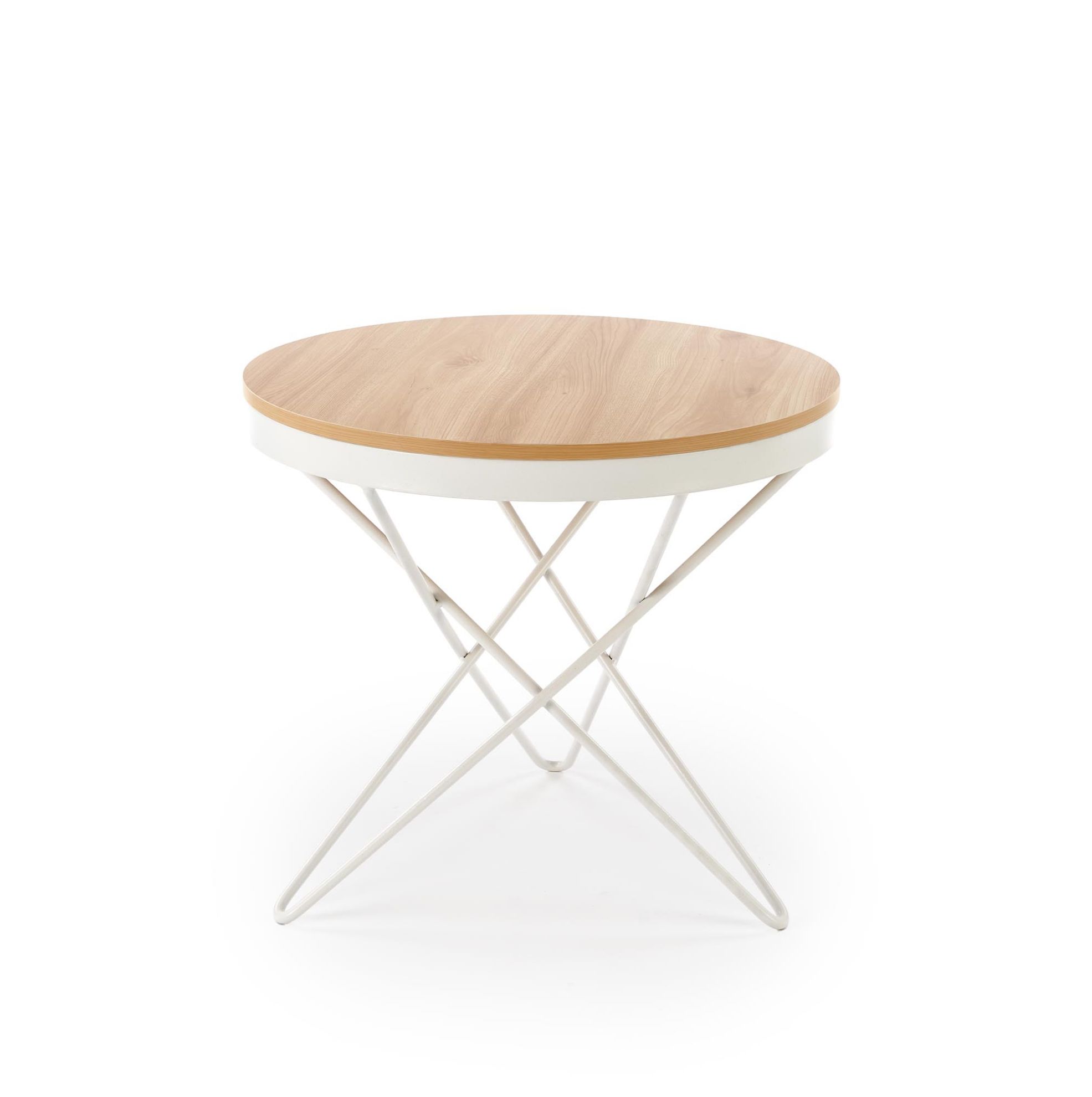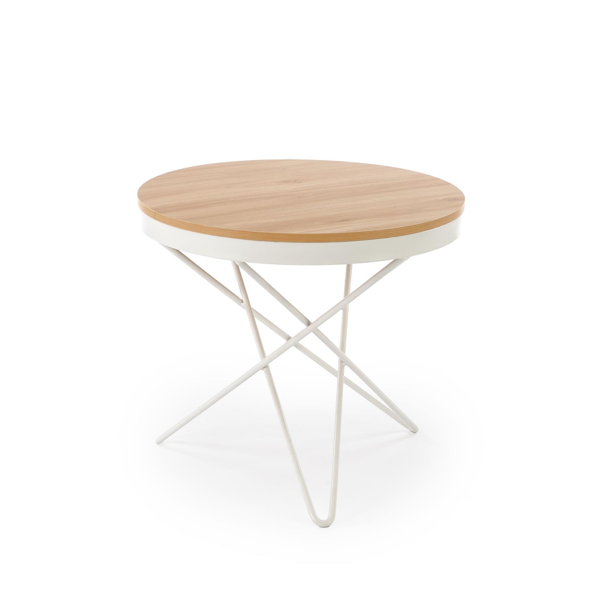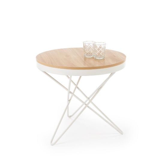 Ława Rena nie tylko ułatwia organizację przestrzeni, ale także stanowi dekoracyjny element wnętrza. Okrągły blat fi60/55 cm umożliwia wygodne ustawienie dekoracji, książek czy napojów, jednocześnie zachowując przestrzeń do swobodnego poruszania się. Jej nowoczesny design i połączenie kolorów naturalnego drewna z bielą sprawiają, że ława pasuje zarówno do klasycznych, jak i nowoczesnych wnętrz.