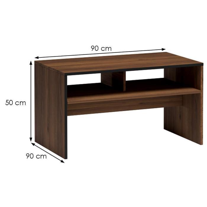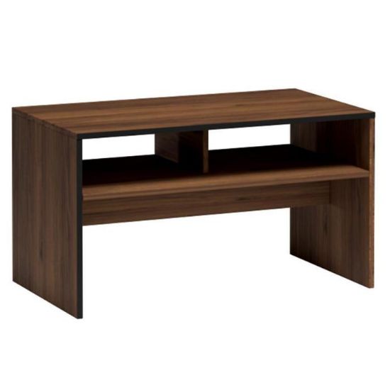 Ława Senesi idealnie sprawdzi się w nowoczesnych wnętrzach. Wykonana z płyty wiórowej laminowanej w ciepłym kolorze orzechowym.