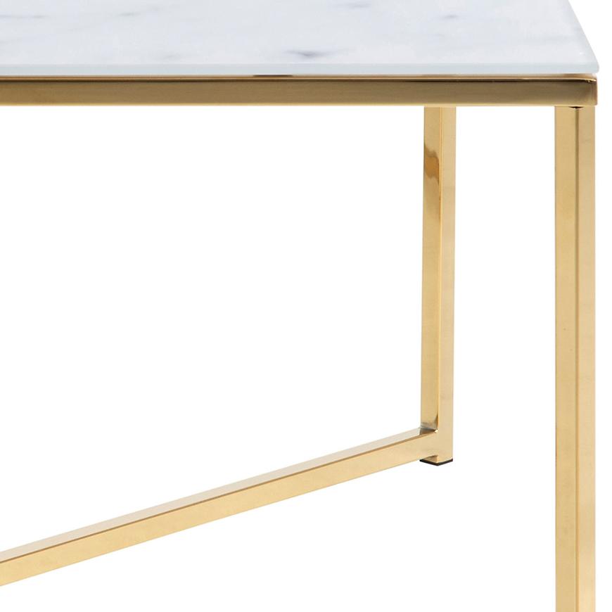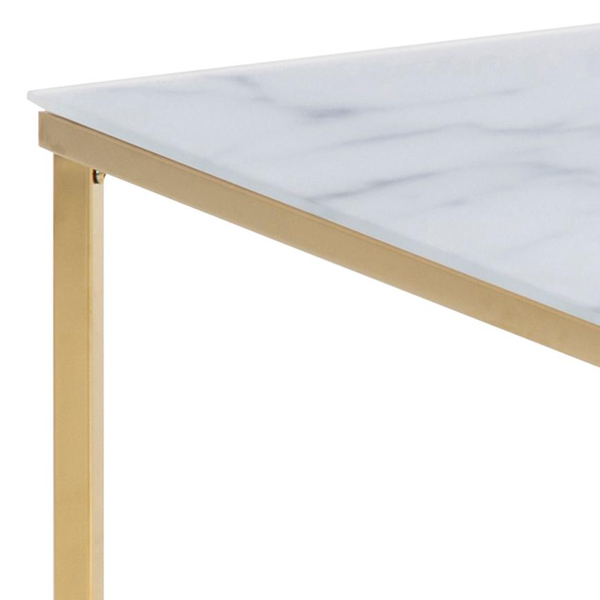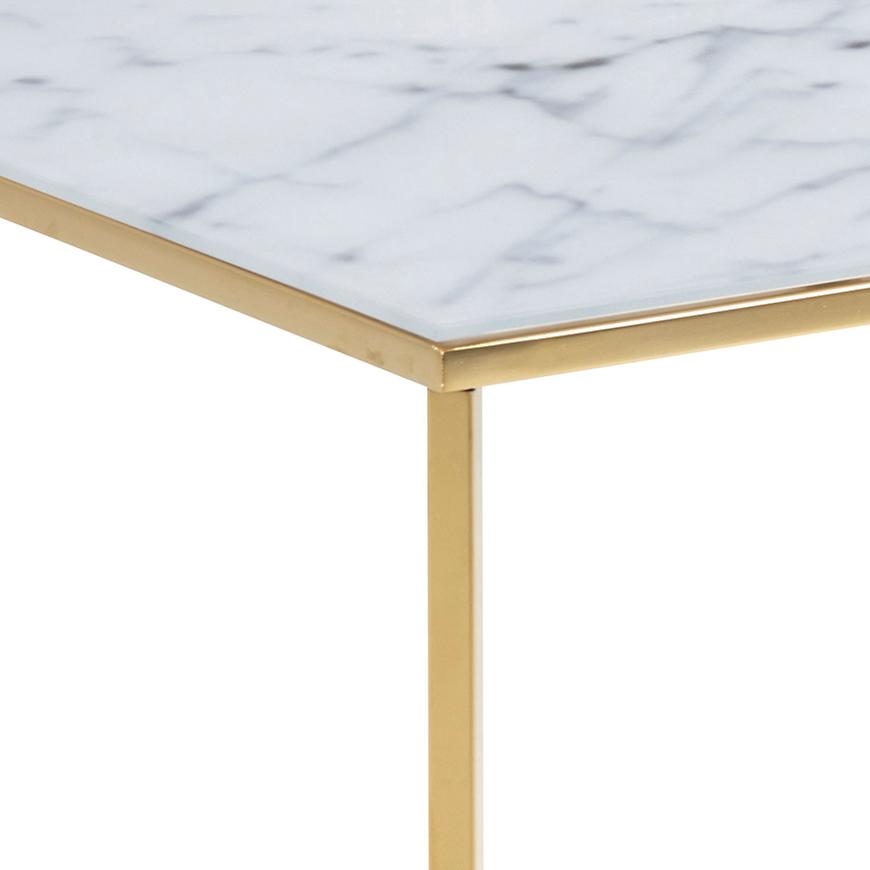 Biały marmur nadaje ławie wyrafinowanego charakteru, a białe wybarwienie dodaje jej lekkości i nowoczesnego wyrazu. Matowe wykończenie blatu podkreśla elegancję mebla, a sam blat wykonany ze szkła dodaje mu subtelności.