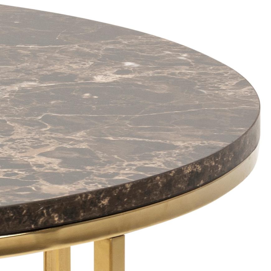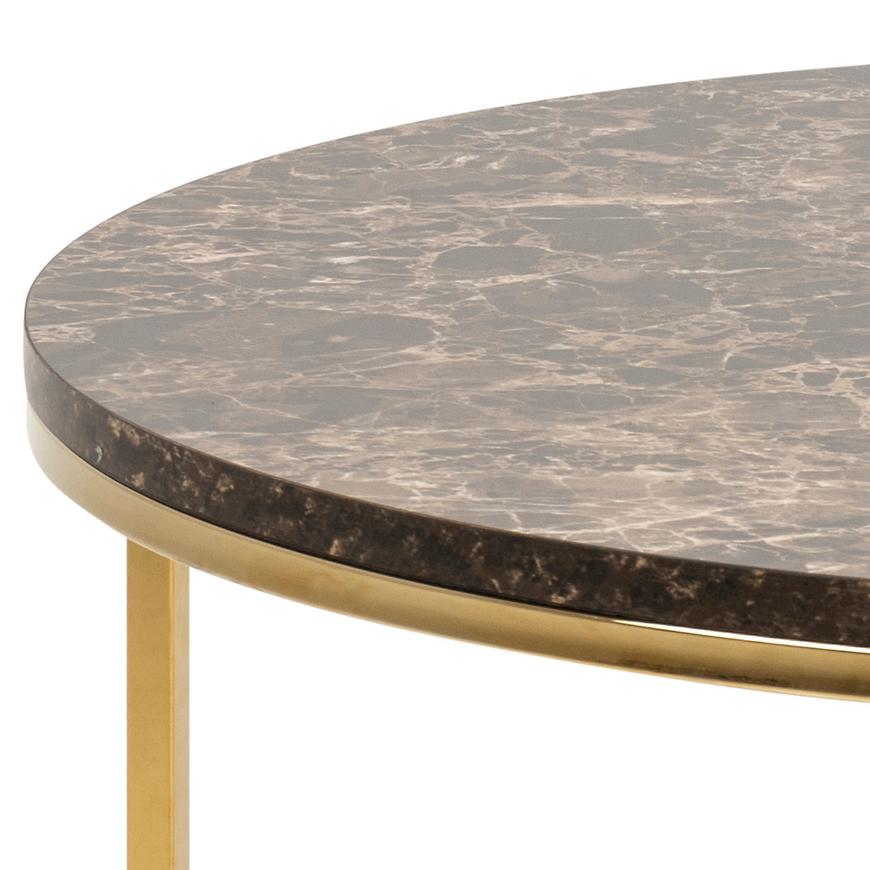 Ława Sigma Brązowy Marmur to połączenie elegancji i nowoczesności. Brązowy marmur nadaje meblowi wyjątkowego charakteru, a matowe wykończenie blatu dodaje mu subtelności. Okrągły kształt blatu sprawia, że ława będzie doskonale wyglądać w różnych aranżacjach.