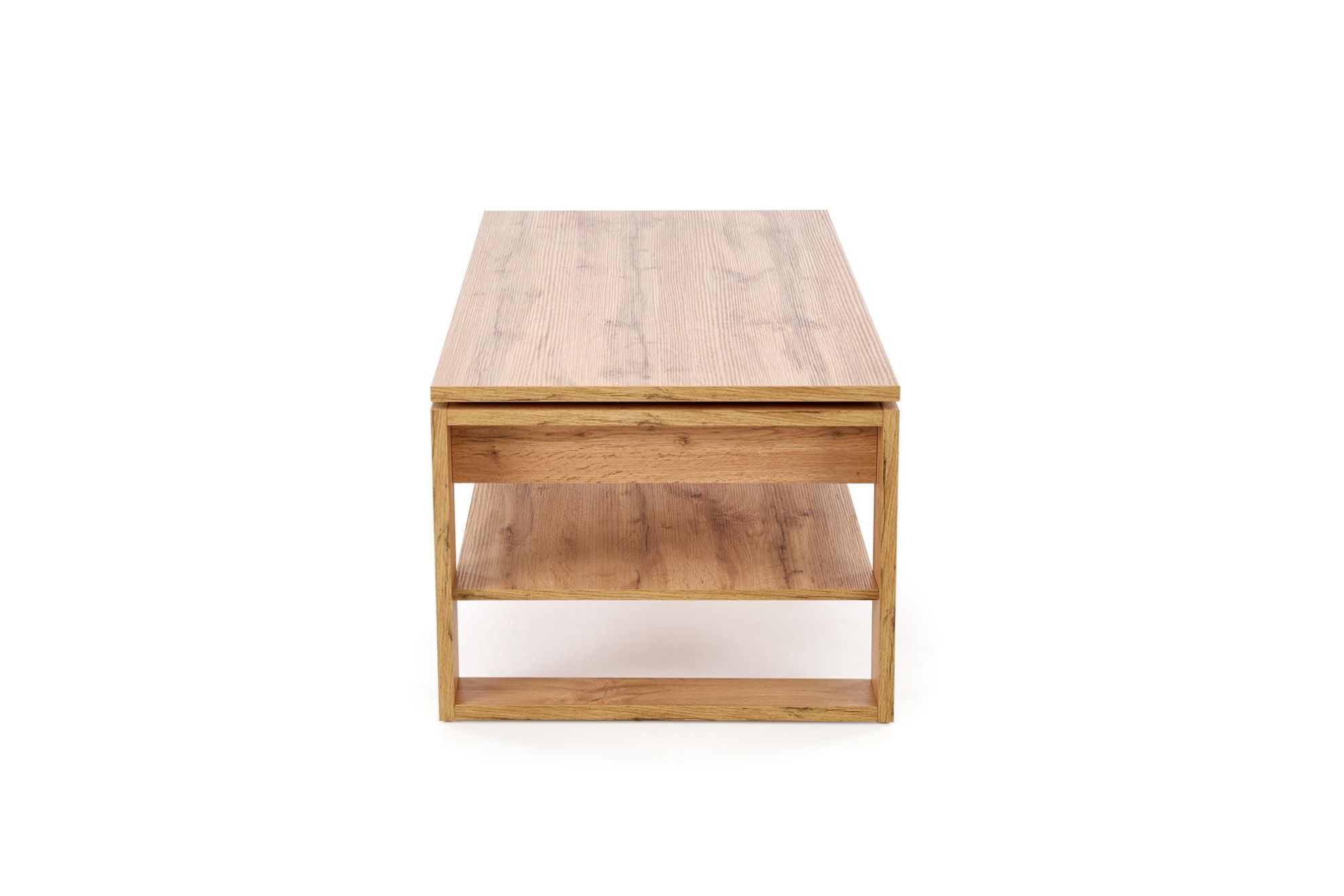 Ława Sileo to nowoczesny mebel łączący elegancję i wygodę użytkowania. Wykonana z wysokiej jakości płyty meblowej laminowanej w ciepłym odcieniu dąb artisan, doskonale wpisuje się w różne aranżacje wnętrz – od minimalistycznych po klasyczne. Jej podnoszony blat umożliwia łatwe korzystanie z powierzchni jako stolika do pracy, posiłków czy codziennych aktywności, zapewniając komfort w każdej sytuacji.