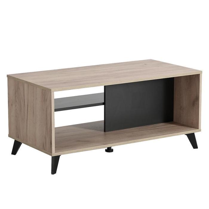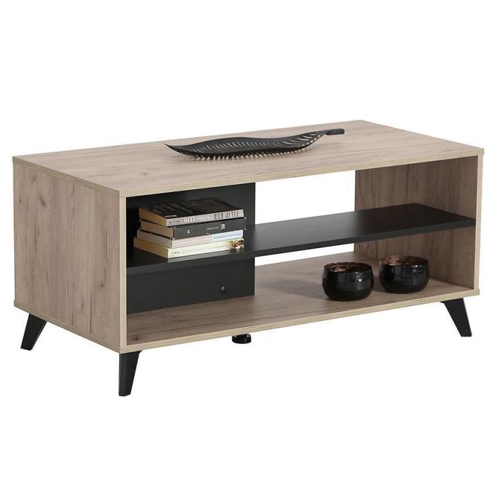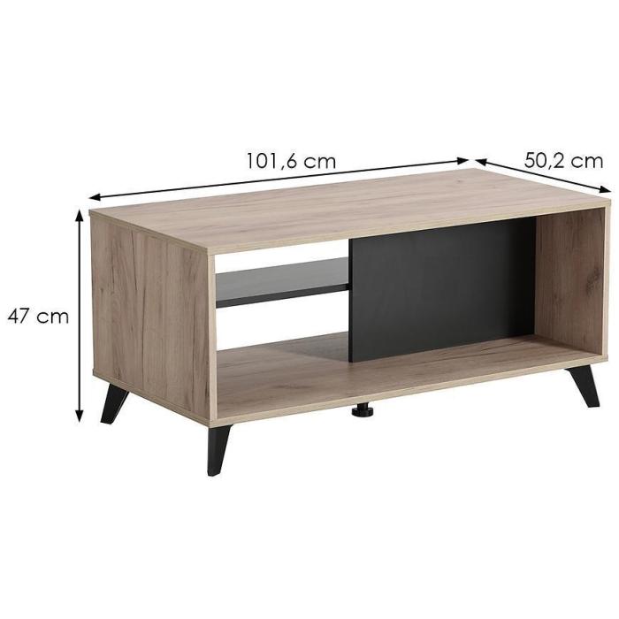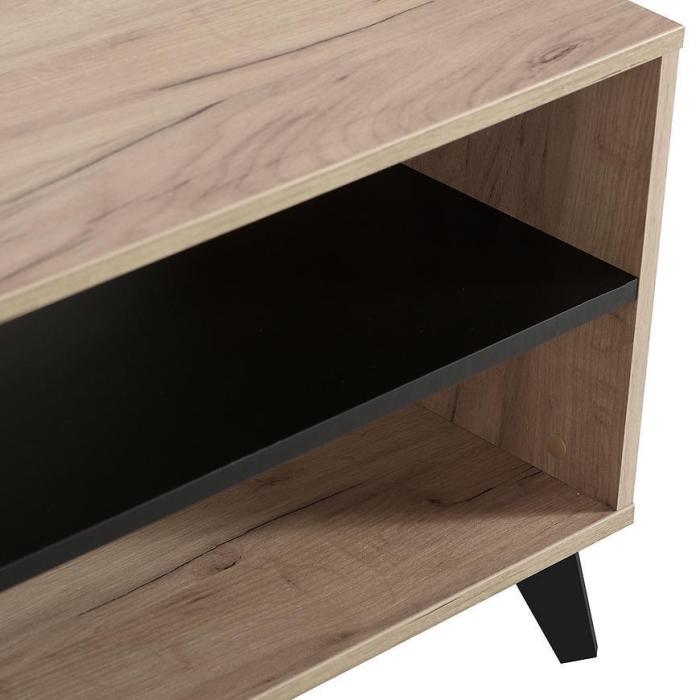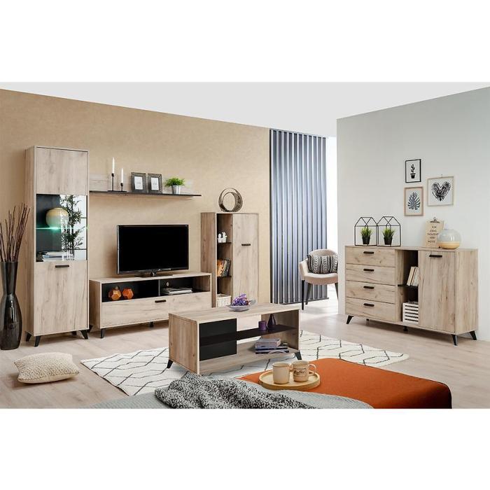 Doskonale sprawdzi się w salonie lub innym, dowolnym pomieszczeniu. Wykonana jest w całości z płyty wiórowej laminowanej.