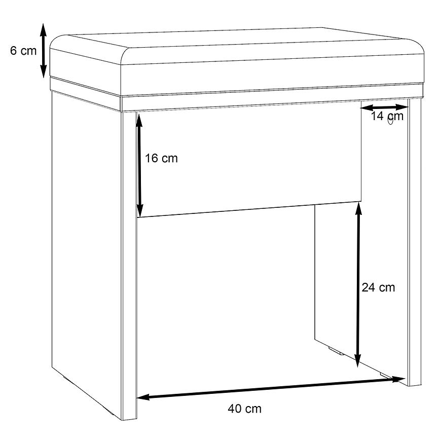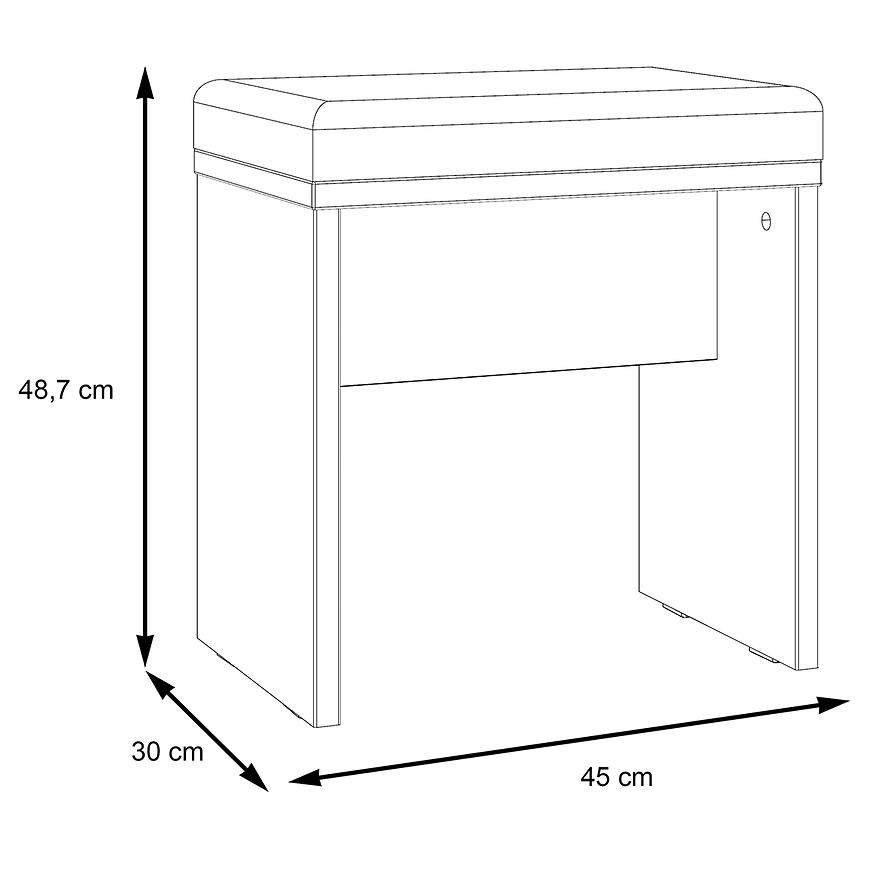 Ławeczka Nemezy to ergonomiczny mebel wykonany w stylu nowoczesnym. Idealne dopełnienie toaletki. Miekkię siedzenie sprawi, że rutynowe czynności wykonywane będa z przyjemnością i wygodą. Mebel wykonany z płyty wiórowej laminowanej. Nowoczesna kolorystyka świetnie wpisze się w większość aranżacji.