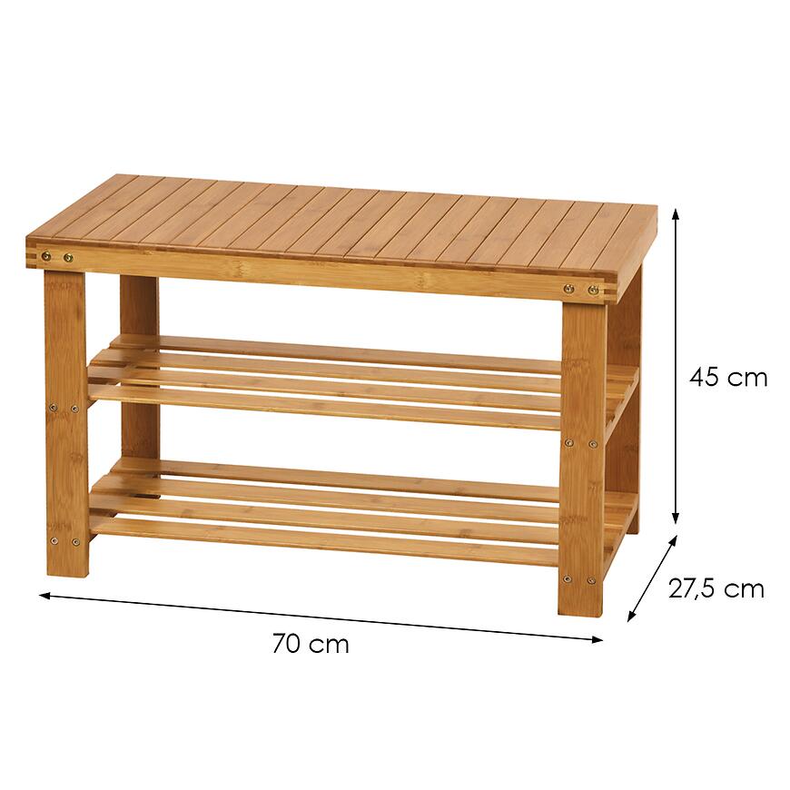 Ławka Bambusowa Sven to skandynawski mebel o jasnym, drewnopodobnym wybarwieniu, wykonany z drewna i bambusa. Jej korpus i fronty wykończono matowo, a całość ma naturalno-szary kolor. Ławka ma wymiary 70 cm głębokości, 27,5 cm szerokości i 45 cm wysokości, waży 4,65 kg i wymaga samodzielnego montażu.