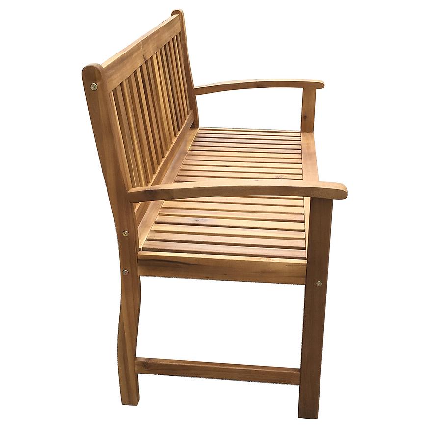Wykonana z drewna akacjowego, ławka prezentuje się nie tylko estetycznie, ale także jest trwała i odporne na warunki atmosferyczne. Surowe drewno akacjowe nadaje ławce naturalny, przyjemny odcień, który wyróżnia się wśród innych mebli ogrodowych. Prosta konstrukcja ławki jest ergonomiczna, a szerokie podłokietniki oraz luźno umieszczone deski w oparciu zapewniają wygodę, jednocześnie nie blokując przepływu powietrza.