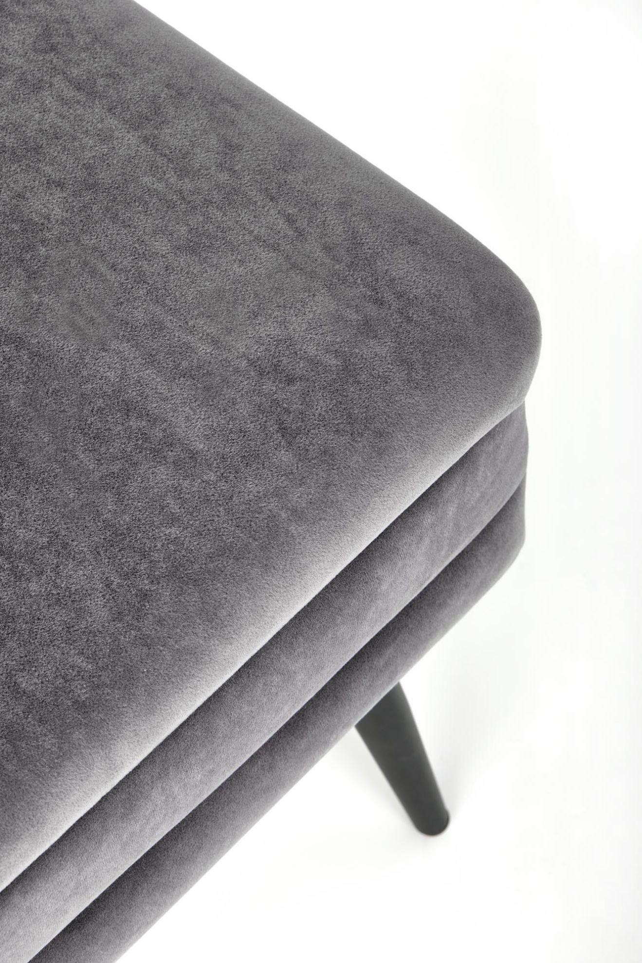 Podstawa ławki wykonana została z wysokiej jakości stali malowanej proszkowo w kolorze czarnym. Taka konstrukcja gwarantuje trwałość, stabilność i odporność na codzienne użytkowanie. Czarna metalowa rama tworzy efektowny kontrast z popielatą tapicerką, podkreślając nowoczesny charakter mebla. To idealne zestawienie dla wnętrz, w których liczy się prostota formy i wyrafinowany styl.