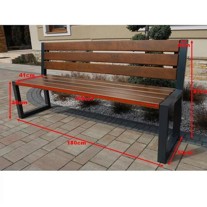 Ławka idealnie wpasuje się w design ogrodu, balkonu czy tarasu. Będzie pasowała również do parku. Wykorzystany materiał to elementy stalowe i drewniane listwy olchowe o grubości 40mm co sprawia, że ławka jest wytrzymała i solidna. Profile stalowe są ocynkowane i malowane proszkowo.
