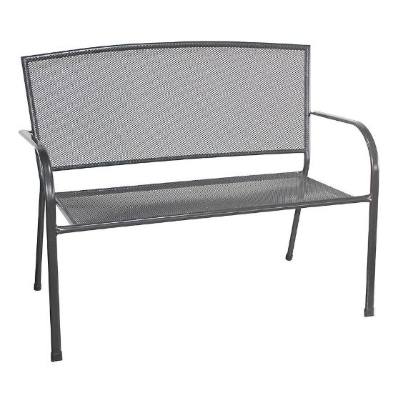 Ławka o wymiarach 88 x 58,5 x 110 cm oferuje wygodne miejsce do odpoczynku dla dwóch osób. Solidna stalowa konstrukcja w kolorze grafitowym nadaje meblowi nowoczesny wygląd, jednocześnie gwarantując trwałość i odporność na warunki atmosferyczne.