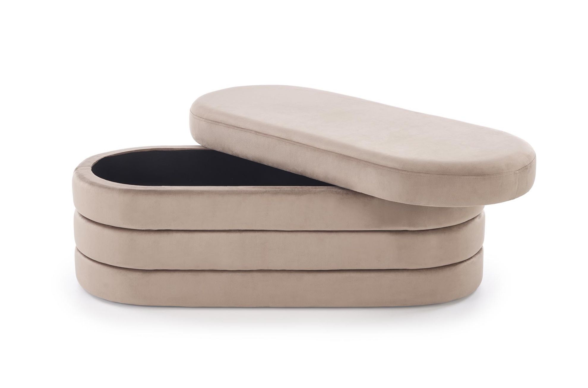 Ławka Calben w beżowym wykończeniu łączy nowoczesny design z glamour. Tapicerka z tkaniny velvet zapewnia wygodne siedzenie, a wbudowany pojemnik pozwala na przechowywanie drobiazgów, takich jak koce, poduszki czy akcesoria domowe. Wymiary 110/46/42 cm sprawiają, że ławka jest praktyczna i estetyczna, idealna do salonu, przedpokoju lub sypialni.