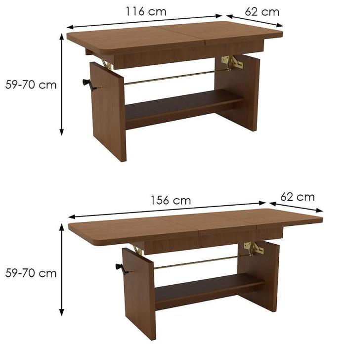 Rozkładany Ławostół Janek to świetne rozwiązanie podczas dużych rodzinnych spotkań. Na co dzień może pełnić funkcję mniejszego stołu do kuchni czy jadalni. Po rozłożeniu przyjmuje szerokość 156cm. Ławostół Janek ma również możliwość podwyższenia z 59cm na 70cm.