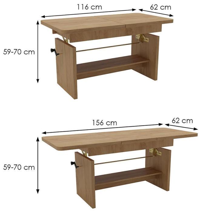 Rozkładany Ławostół Janek to świetne rozwiązanie podczas dużych rodzinnych spotkań. Na co dzień może pełnić funkcję mniejszego stołu do kuchni czy jadalni. Po rozłożeniu przyjmuje szerokość 156cm. Ławostół Janek ma również możliwość podwyższenia z 59cm na 70cm.