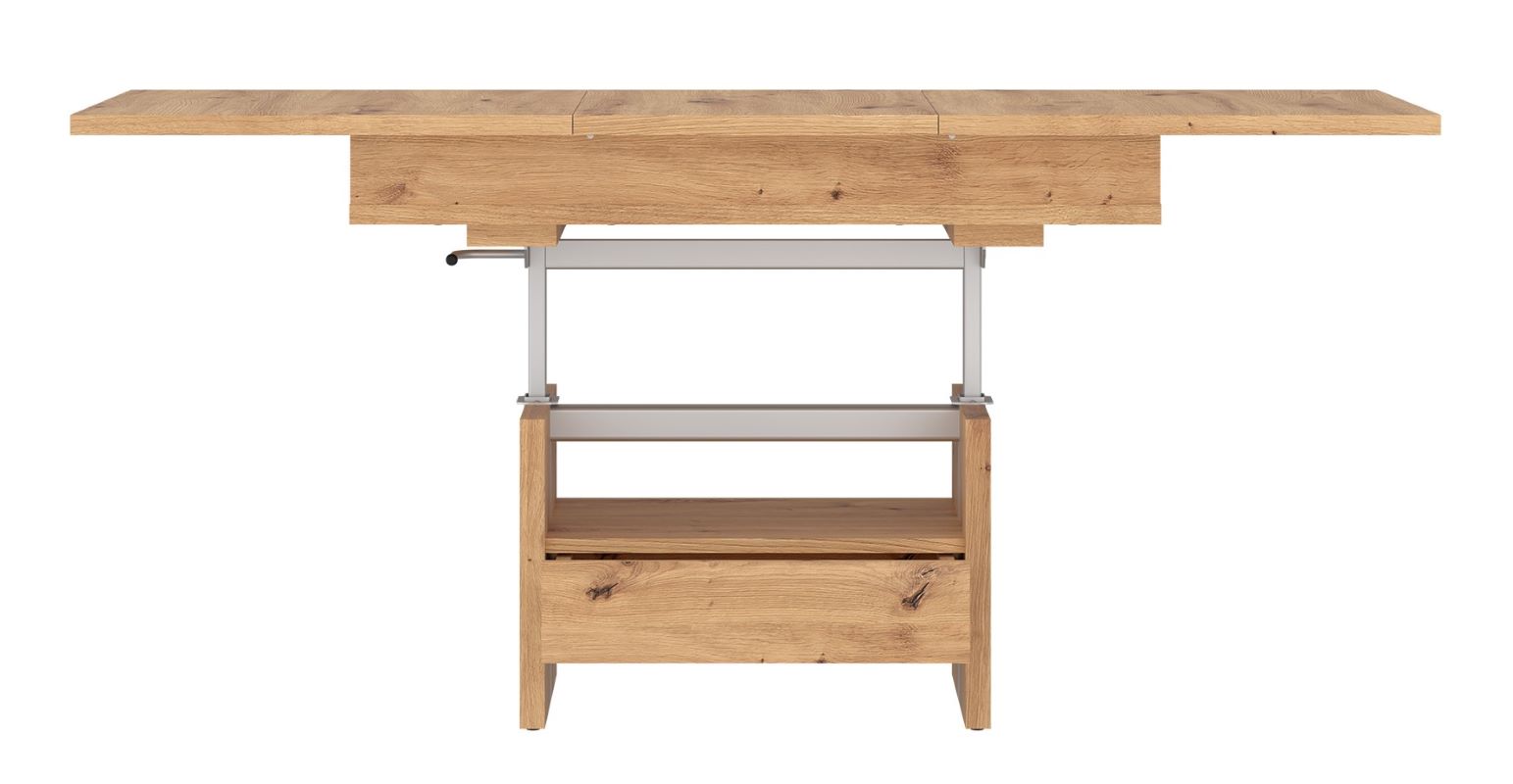 Ławostół rozkładany Cortado 1S CRTT02 to idealny wybór dla osób, które poszukują wielofunkcyjnych mebli do salonu lub jadalni. Na co dzień pełni funkcję niskiej ławy przy sofie, natomiast po rozłożeniu zamienia się w wygodny stół o długości 150 cm. Zakres regulacji wysokości od 56 do 72 cm pozwala na dopasowanie mebla do indywidualnych potrzeb i komfortu użytkowników.