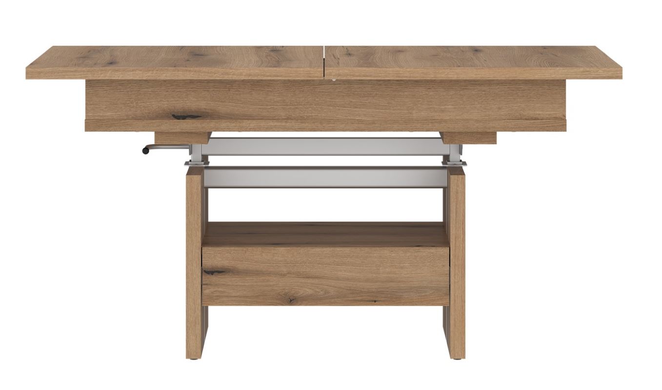 Ławostół rozkładany Cortado 1S CRTT02 to idealny wybór dla osób, które poszukują wielofunkcyjnych mebli do salonu lub jadalni. Na co dzień pełni funkcję niskiej ławy przy sofie, natomiast po rozłożeniu zamienia się w wygodny stół o długości 150 cm. Zakres regulacji wysokości od 56 do 72 cm pozwala na dopasowanie mebla do indywidualnych potrzeb i komfortu użytkowników.