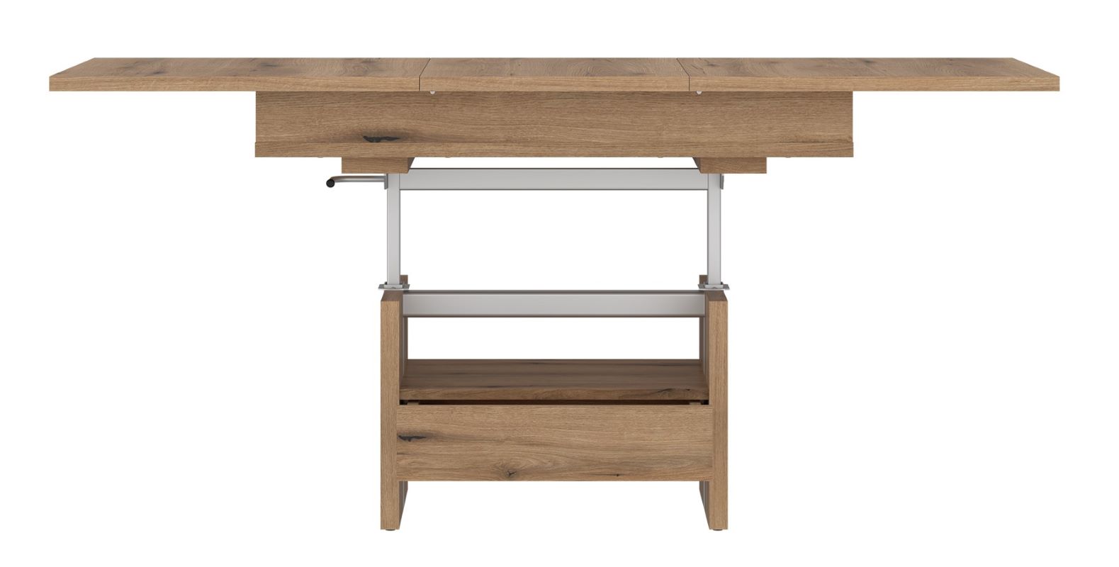 Dzięki zastosowaniu mechanizmu podnoszenia i rozkładania blatu na prowadnicy synchronicznej, zmiana wysokości i wielkości stołu odbywa się płynnie i bez wysiłku. W kilka chwil możesz uzyskać komfortową przestrzeń do wspólnego posiłku, pracy lub spotkań z przyjaciółmi.
