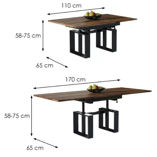 Dodatkowym atutem jest regulacja wysokości blatu od 58 do 75 cm, dzięki czemu ławostół Empoli 170 można łatwo dostosować do różnych potrzeb – od niskiej ławy po pełnowymiarowy stół.