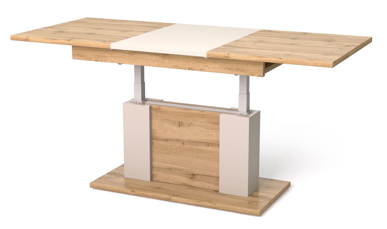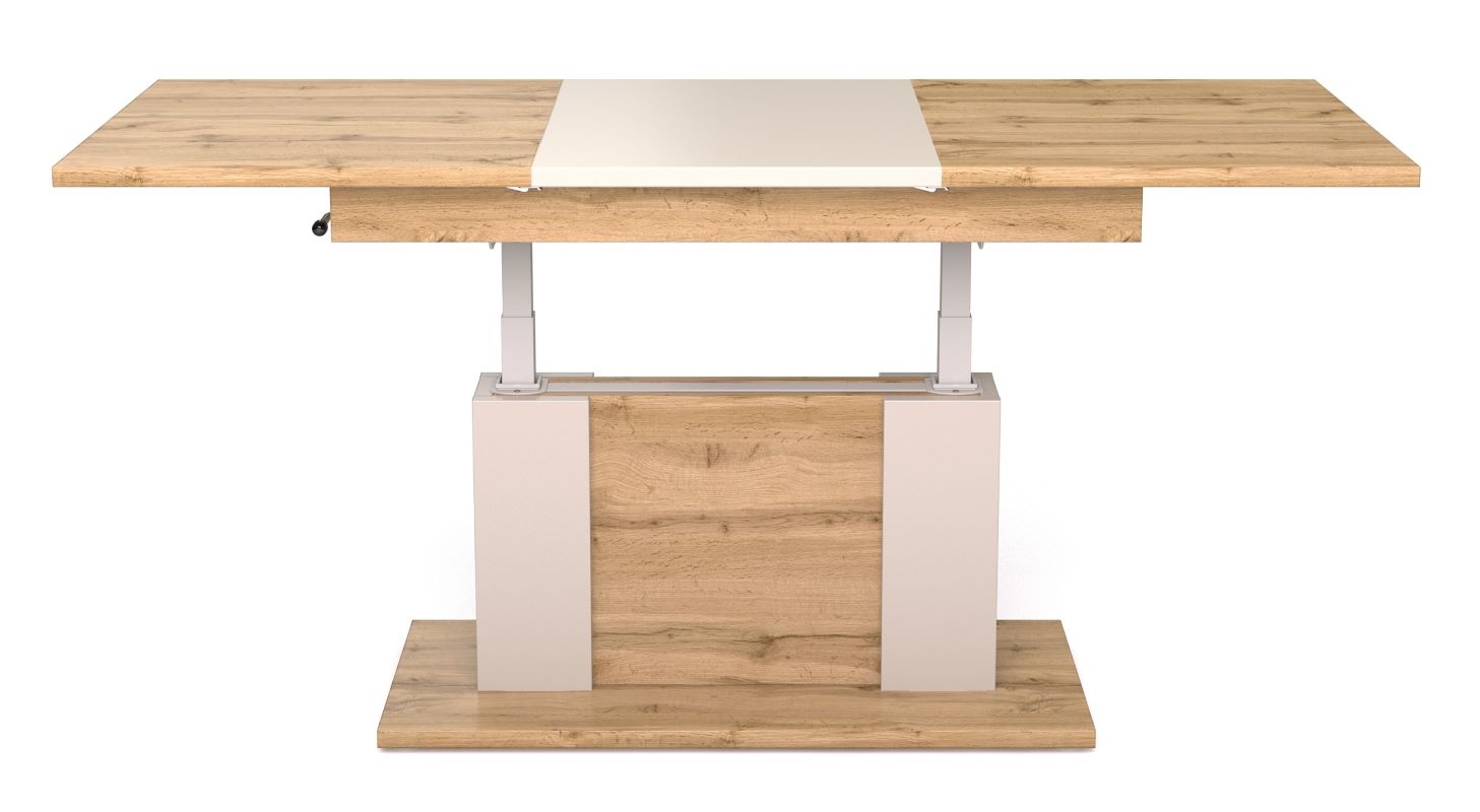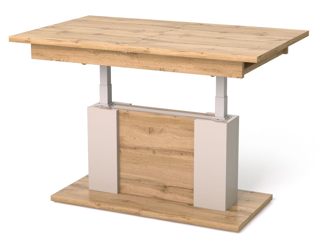 Ławostół rozkładany Porta dąb wotan/kaszmir łączy nowoczesny design, funkcjonalność i solidne wykonanie. Regulowana wysokość, rozkładany blat oraz trwałe materiały sprawiają, że jest to mebel wyjątkowo praktyczny do salonu, pokoju dziennego czy przestrzeni wielofunkcyjnej. Porta oferuje komfort, styl i wygodę użytkowania, jednocześnie dodając wnętrzu nowoczesnego charakteru.
