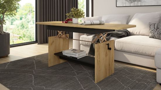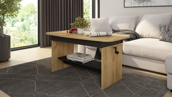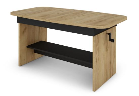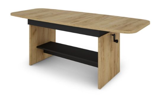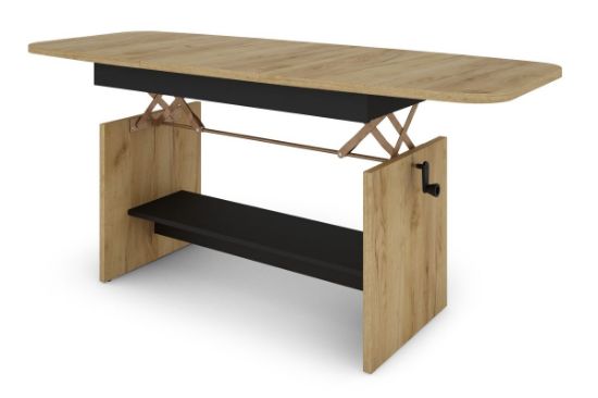 Regulowana wysokość blatu do 69,6 cm zapewnia komfortowe dostosowanie ławostołu do potrzeb – może on pełnić funkcję stolika kawowego lub szybko przekształcić się w funkcjonalny stół jadalniany. To idealne rozwiązanie do mieszkań, w których liczy się każdy centymetr przestrzeni.