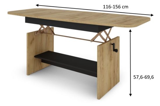 Regulacja wysokości blatu do 69,6 cm – stolik i stół w jednym