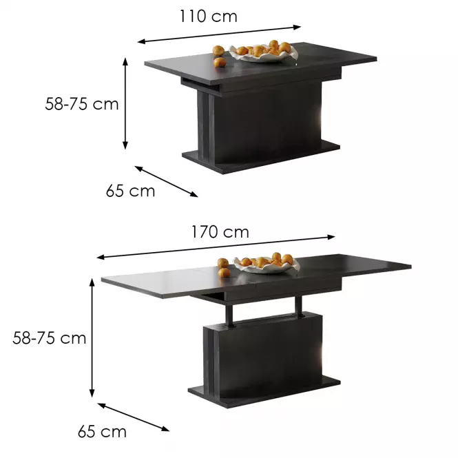 Dodatkowym atutem jest regulacja wysokości blatu od 58 do 75 cm, dzięki czemu ławostół Solaris 170 można łatwo dostosować do różnych potrzeb – od niskiej ławy po pełnowymiarowy stół.