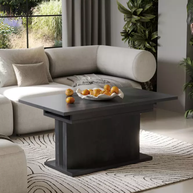 Ławostół rozkładany Solaris 170 beton ciemny to stylowy i nowoczesny mebel, który doskonale łączy funkcjonalność z estetyką, oferując niezwykłą wszechstronność w każdym wnętrzu. Dzięki możliwości rozłożenia oraz regulacji wysokości blatu, Solaris 170 idealnie sprawdzi się zarówno w salonie, jak i jadalni, zapewniając wygodne miejsce do codziennego użytku, a także do przyjmowania gości.
