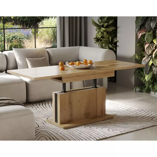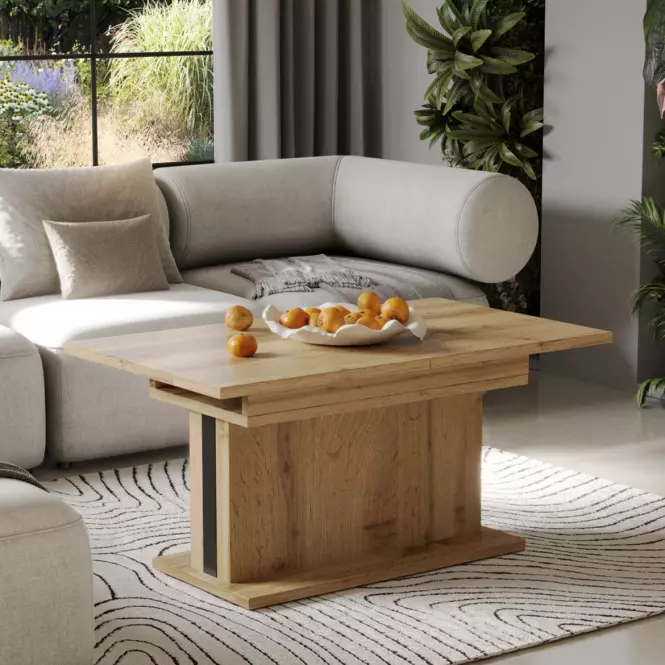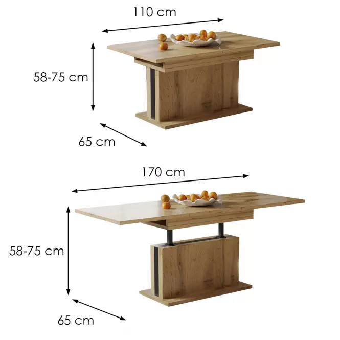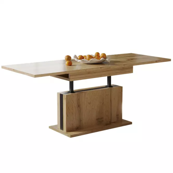 Ławostół rozkładany Solaris 170 dąb wotan to stylowy i nowoczesny mebel, który doskonale łączy funkcjonalność z estetyką, oferując niezwykłą wszechstronność w każdym wnętrzu. Dzięki możliwości rozłożenia oraz regulacji wysokości blatu, Solaris 170 idealnie sprawdzi się zarówno w salonie, jak i jadalni, zapewniając wygodne miejsce do codziennego użytku, a także do przyjmowania gości.