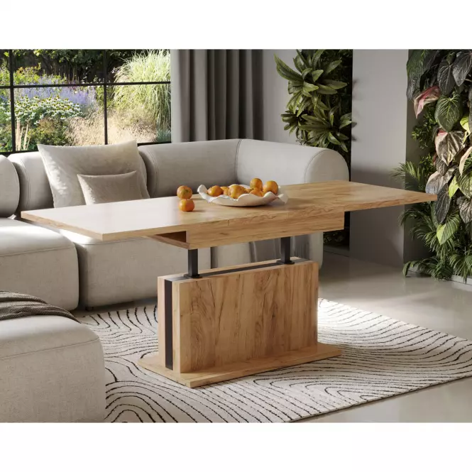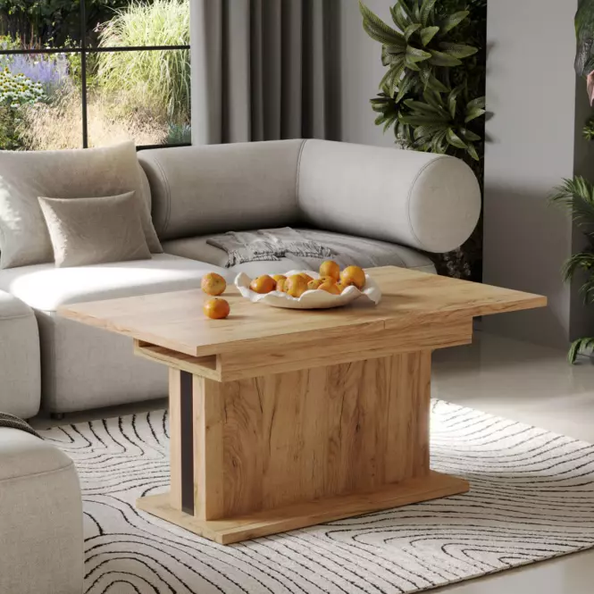 Ławostół rozkładany Solaris 170 dąb złoty craft to stylowy i nowoczesny mebel, który doskonale łączy funkcjonalność z estetyką, oferując niezwykłą wszechstronność w każdym wnętrzu. Dzięki możliwości rozłożenia oraz regulacji wysokości blatu, Solaris 170 idealnie sprawdzi się zarówno w salonie, jak i jadalni, zapewniając wygodne miejsce do codziennego użytku, a także do przyjmowania gości.