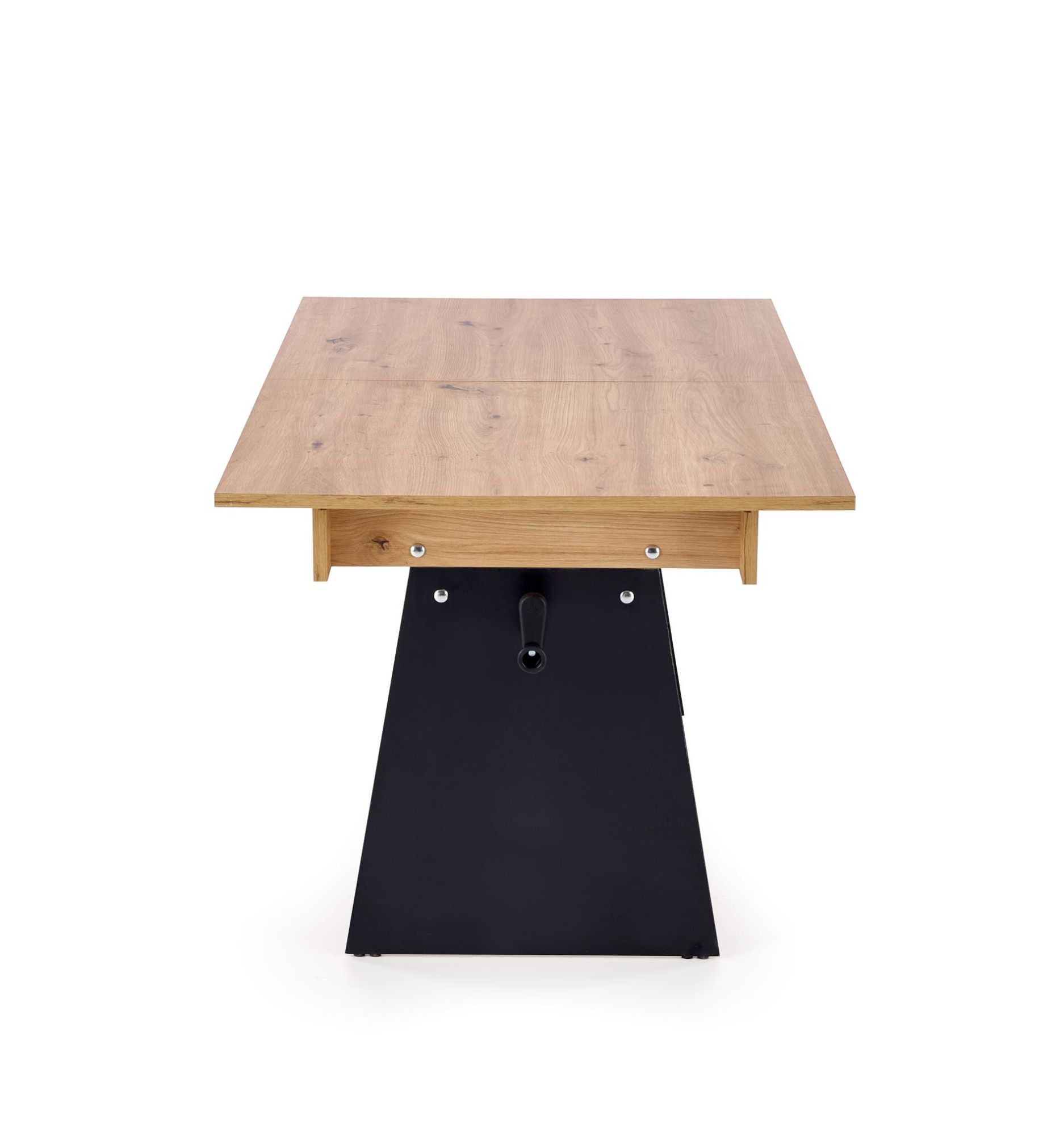 Ławostół Vero rozkładany to praktyczny i stylowy mebel, który doskonale sprawdzi się w salonie, jadalni lub pokoju dziennym. Model o wymiarach 120-160/70/61-72 cm umożliwia szybkie dopasowanie wielkości blatu do aktualnych potrzeb użytkowników. Dzięki funkcji rozkładania ławostół może pełnić rolę kompaktowego stolika kawowego, a w razie potrzeby zamienia się w wygodny stół do spożywania posiłków, pracy lub spotkań w większym gronie. Połączenie dekoru dąb artisan z czarnymi elementami konstrukcyjnymi tworzy modny kontrast inspirowany stylem loftowym oraz industrialnym, dzięki czemu mebel świetnie komponuje się z nowoczesnymi aranżacjami wnętrz oraz pomieszczeniami utrzymanymi w minimalistycznej stylistyce.