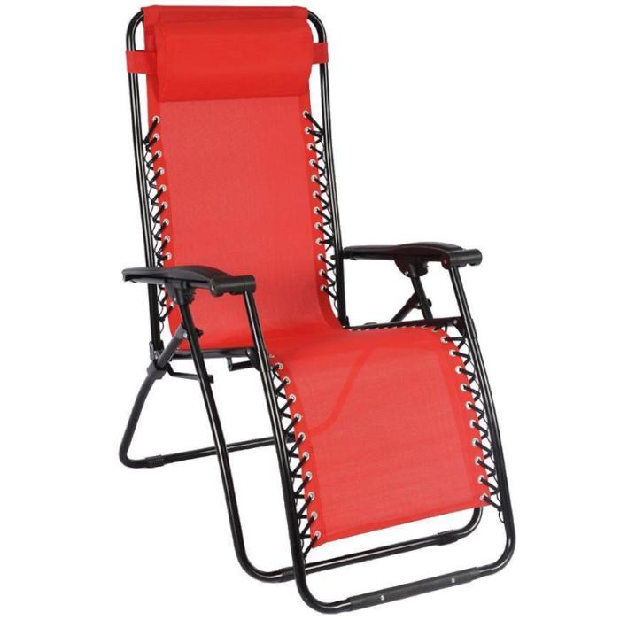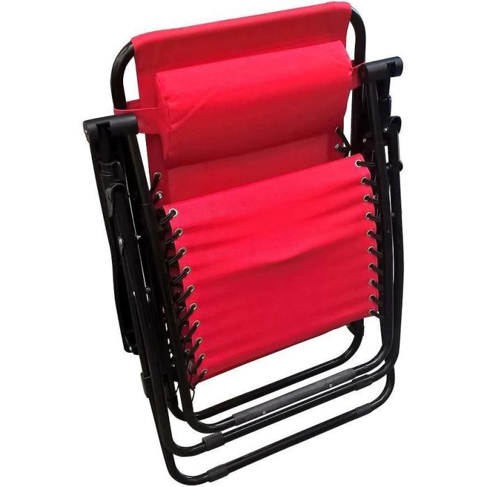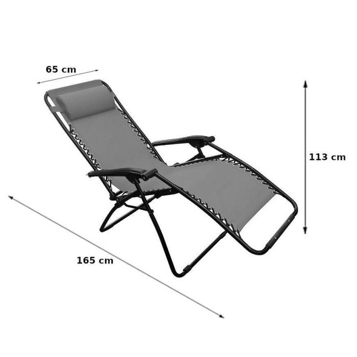 Krzesło ogrodowe, które może pełnić również funkcję leżaka, jest wielopozycyjne oraz posiada poduszkę, która zapinana jest na rzep. Materiał nie chłonie wody. Krzesło posiada różne pozycje, które można ustawić według własnych preferencji (leżąca, pół-leżąca lub siedząca). Jest składany, dzięki czemu zmieści się w każdym samochodzie, posiada antypoślizgowe nakładki.