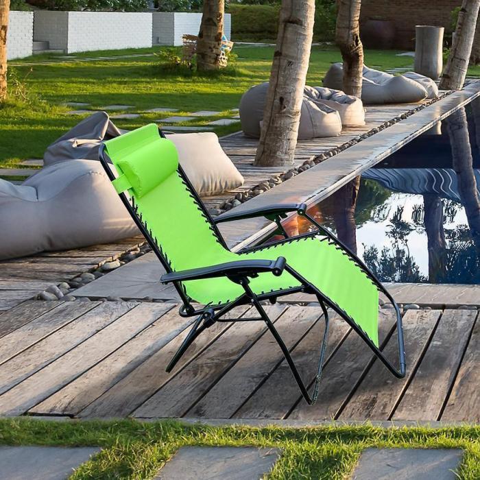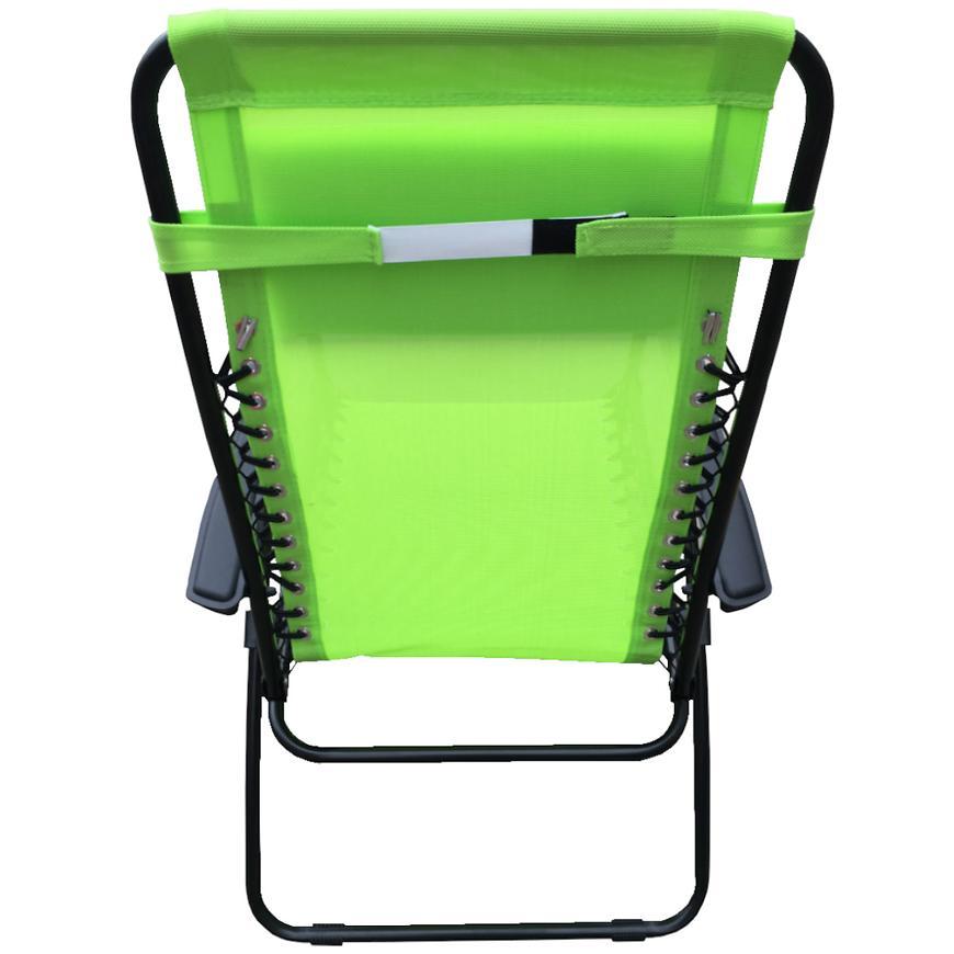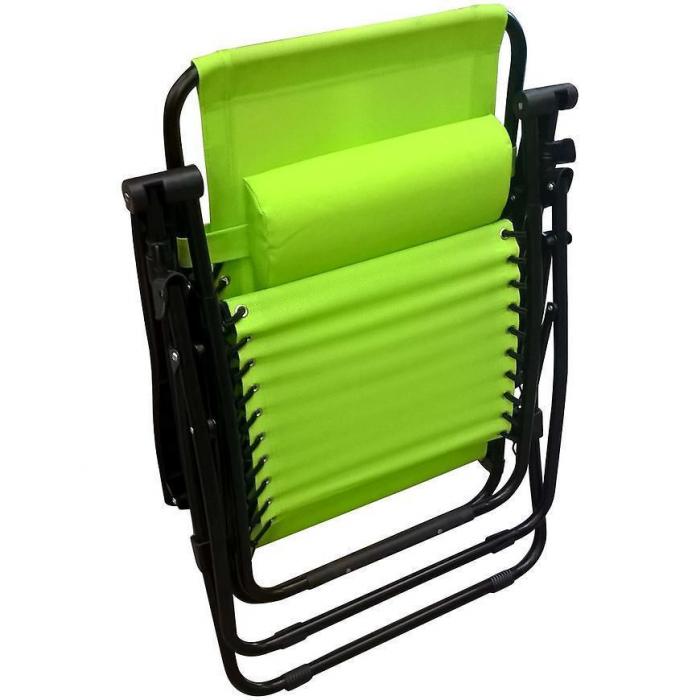 Leżak w kolorze zielonym z regulowanym oparciem w trzech pozycjach leżącej, pól-leżącej oraz siedzącej. Leżak posiada, zapinaią na rzepy poduszkę, zdejmowaną do prania. Leżak można złożyć, co uławtia jego transport. Ławy w pielęgnacji oraz utrzymaniu czystości, wystarczy przetrzec go lekko wilgotna szamatką - materiał zastosowany do produkcji nie chłonie wody. Dodatkowo leżak posiada nakładki antypoślizgowe zwiększając bezpieczne użytkowanie.