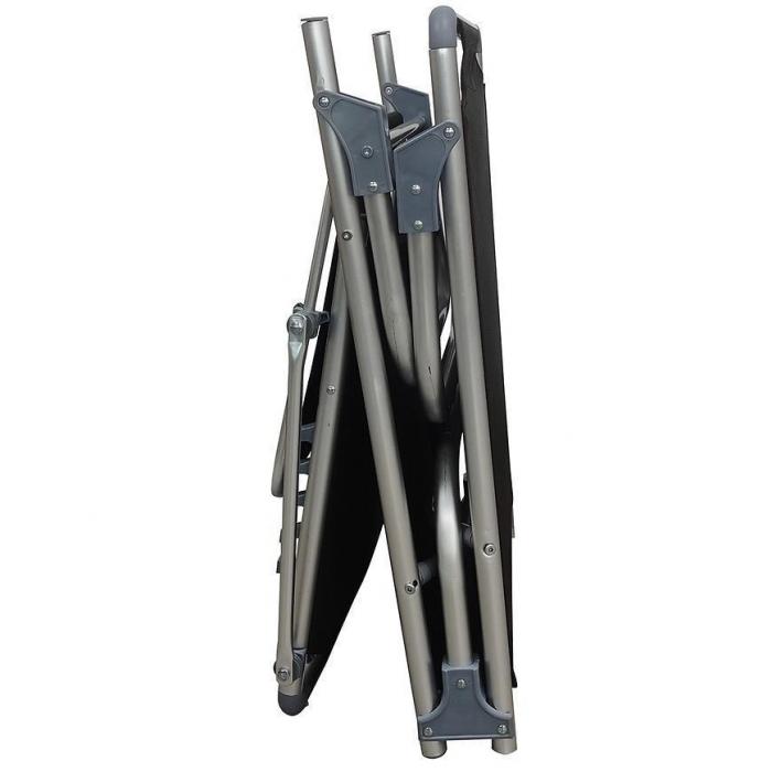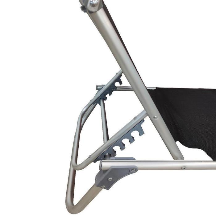 Leżak idealnie sprawdzi się w każdym ogrodzie, na plaży czy w innej formie wypoczynku. Jest składany, dzięki czemu zmieści się w każdym samochodzie, posiada antypoślizgowe rączki oraz metalową ramę malowaną proszkowo. Materiał nie chłonie wody, jest szybkoschnący. Leżak jest wielopozycyjny (pozycja pół-leżąca lub siedząca). Dodatkowo posiada daszek, który jest regulowany oraz dwa materiałowe uchwyty do przenoszenia.