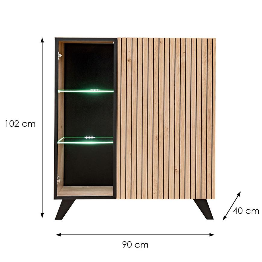 Ta witryna, będąca częścią kolekcji "LIAM," zachwyca swoim nowoczesnym stylem, który doskonale wpisuje się w trendy wystroju wnętrz. Wykończenie frontów w matowym stylu podkreśla jej elegancję.