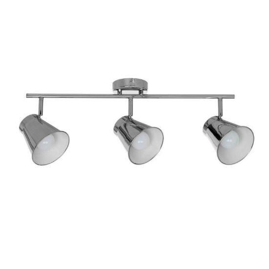 Chromowa na zewnątrz biała w środku listwa z kopułkami na 3 żarówki E 27, idealna do oświetlenia nowoczesnych wnętrz.