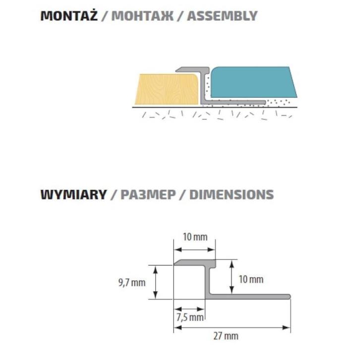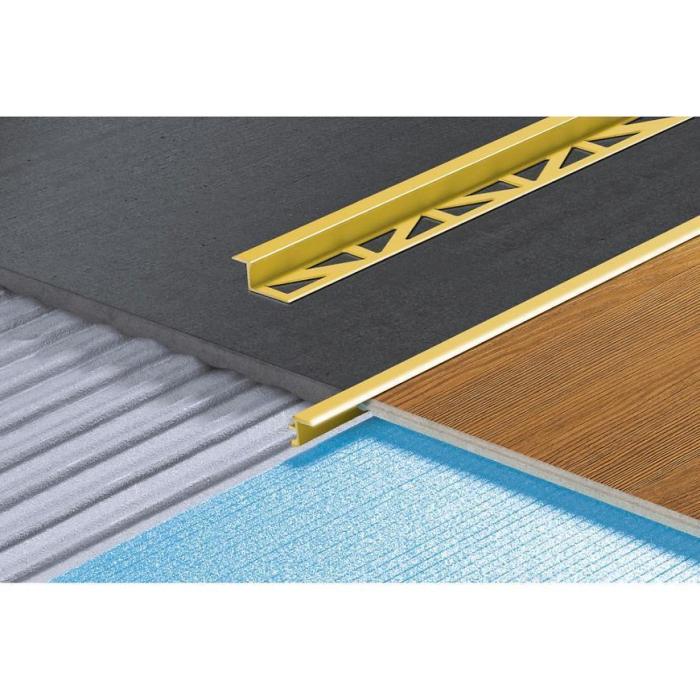 Profil służy do łączenia płytek z innymi rodzajami posadzki, wsuwanymi pod daszek profilu. Umożliwia swobodną pracę (kurczenie i rozszerzanie się) tych posadzek.