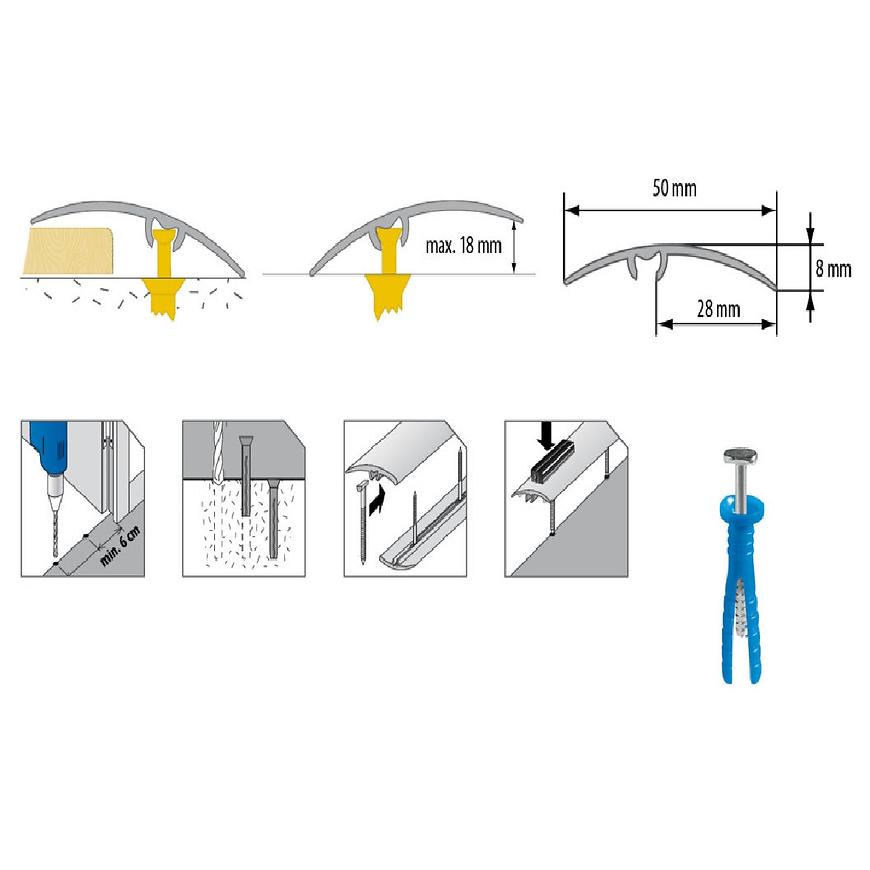 Aluminiowa listwa progowa to idealne rozwiązanie do wykończenia nawierzchni podłogowych poprzez łączenie paneli, wykładzin z parkietem i terakotą. Listwy mogą także zniwelować różnicę poziomów podłóg. Dużą zaletą jest niewidoczny sposób mocowania w podłodze. Listwa progowa pokryta jest bardzo trwałym laminatem, o dużym stopniu odporności na ścieranie.