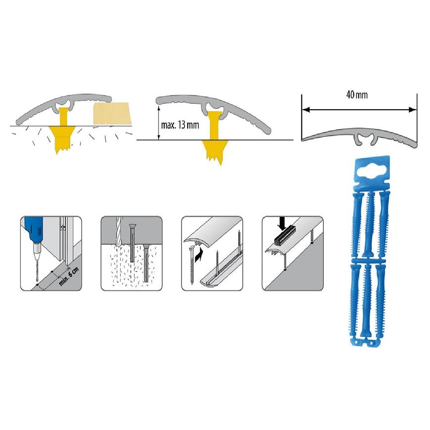 Listwa progowa to idealne rozwiązanie do wykończenia nawierzchni podłogowych poprzez łączenie paneli, wykładzin z parkietem i terakotą. Listwy mogą także zniwelować różnicę poziomów podłóg. Dużą zaletą jest niewidoczny sposób mocowania w podłodze.