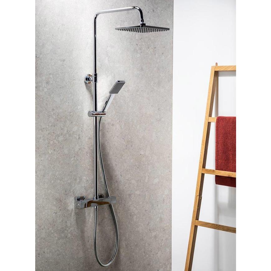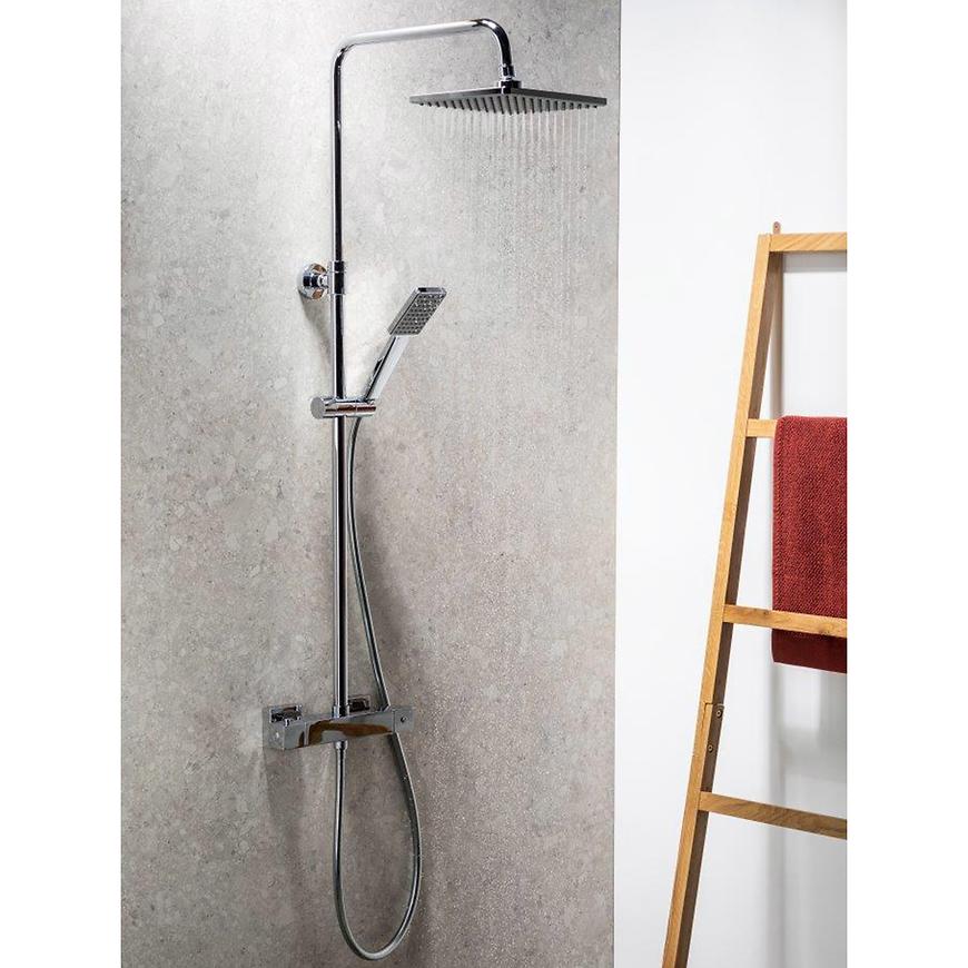 Zestaw natryskowy Logon zachwyca chromowanym wykończeniem, które dodaje nowoczesności i elegancji każdej łazience. Z myślą o pełnej satysfakcji, bateria termostatyczna zapewnia komfort i precyzję podczas regulacji temperatury wody.