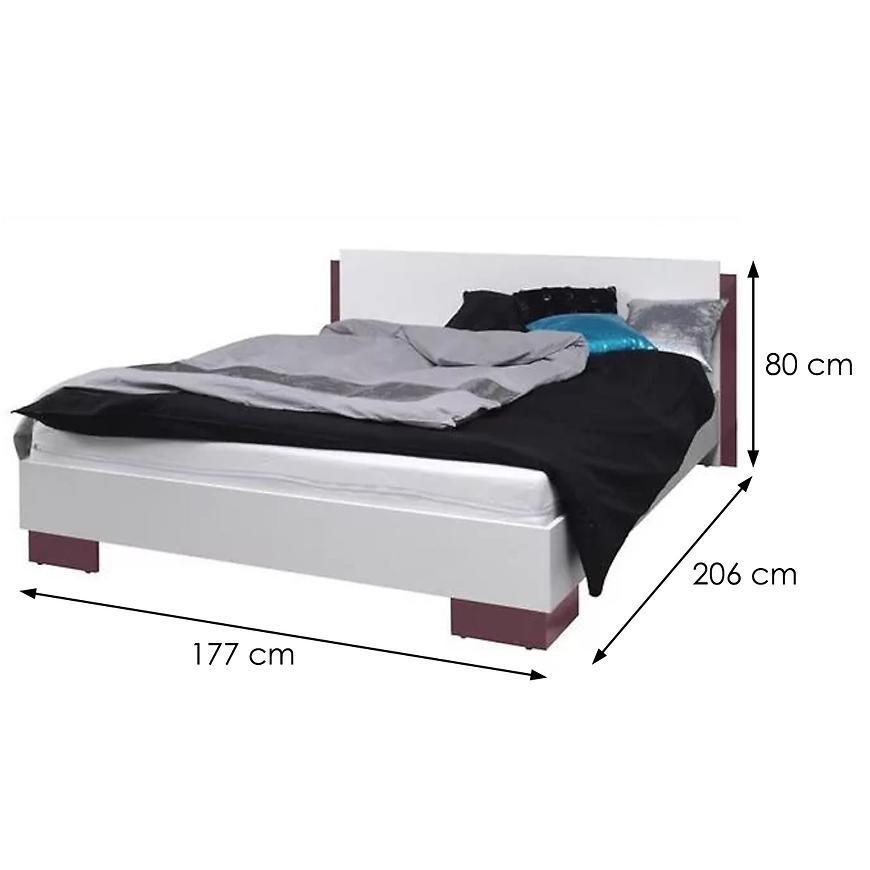Łóżko Lux jest dostępne w kolorze białym z fioletowymi akcentami, co nadaje mu nowoczesnego i stylowego wyglądu. Mebel wykonany jest z trwałej płyty wiórowej laminowanej, a wykończenie frontów jest w połysku, co dodaje mu elegancji.
