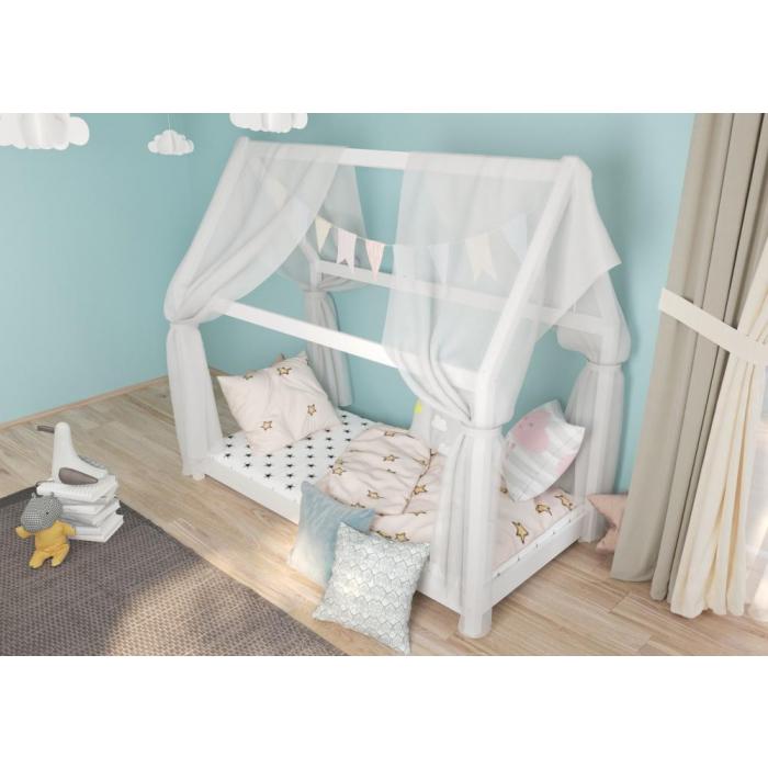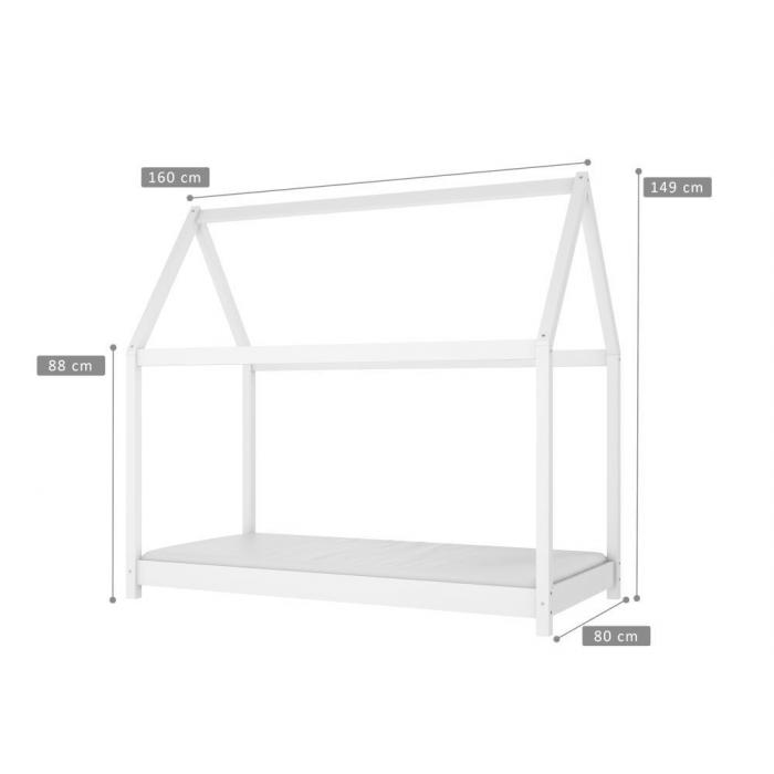 Łóżeczko dziecięce Abens to niezastąpiony mebel do pokoju dziecięcego. Łóżeczko w kształcie domku to marzenie niejednego malucha. Zostało wykonane z drewna sosnowego, które jest wytrzymałe, a wzmocniony stelaż pozwala na utrzymanie również osoby dorosłej. Powierzchnia spania wynosi 160x80cm więc posłuży dziecku na długie lata.