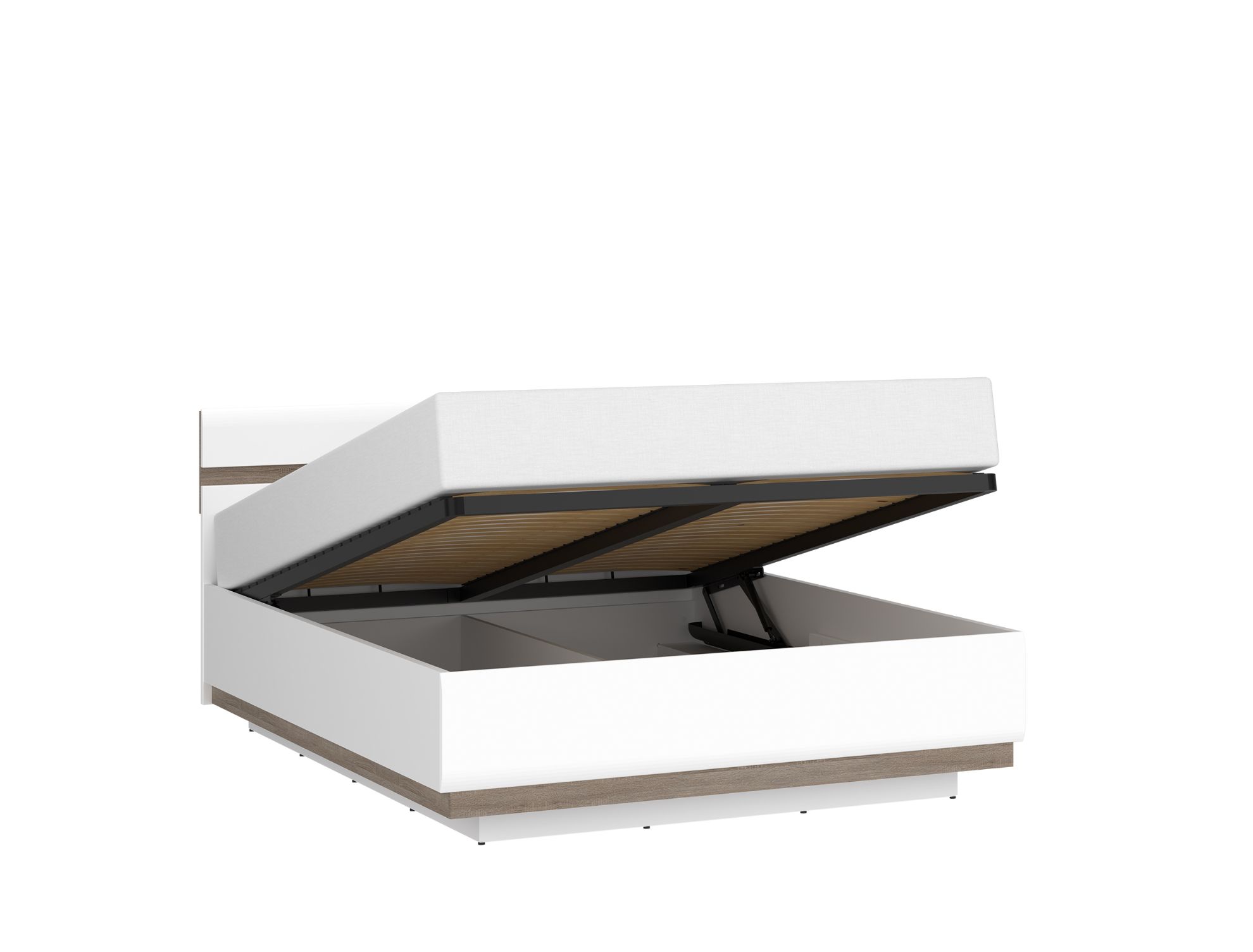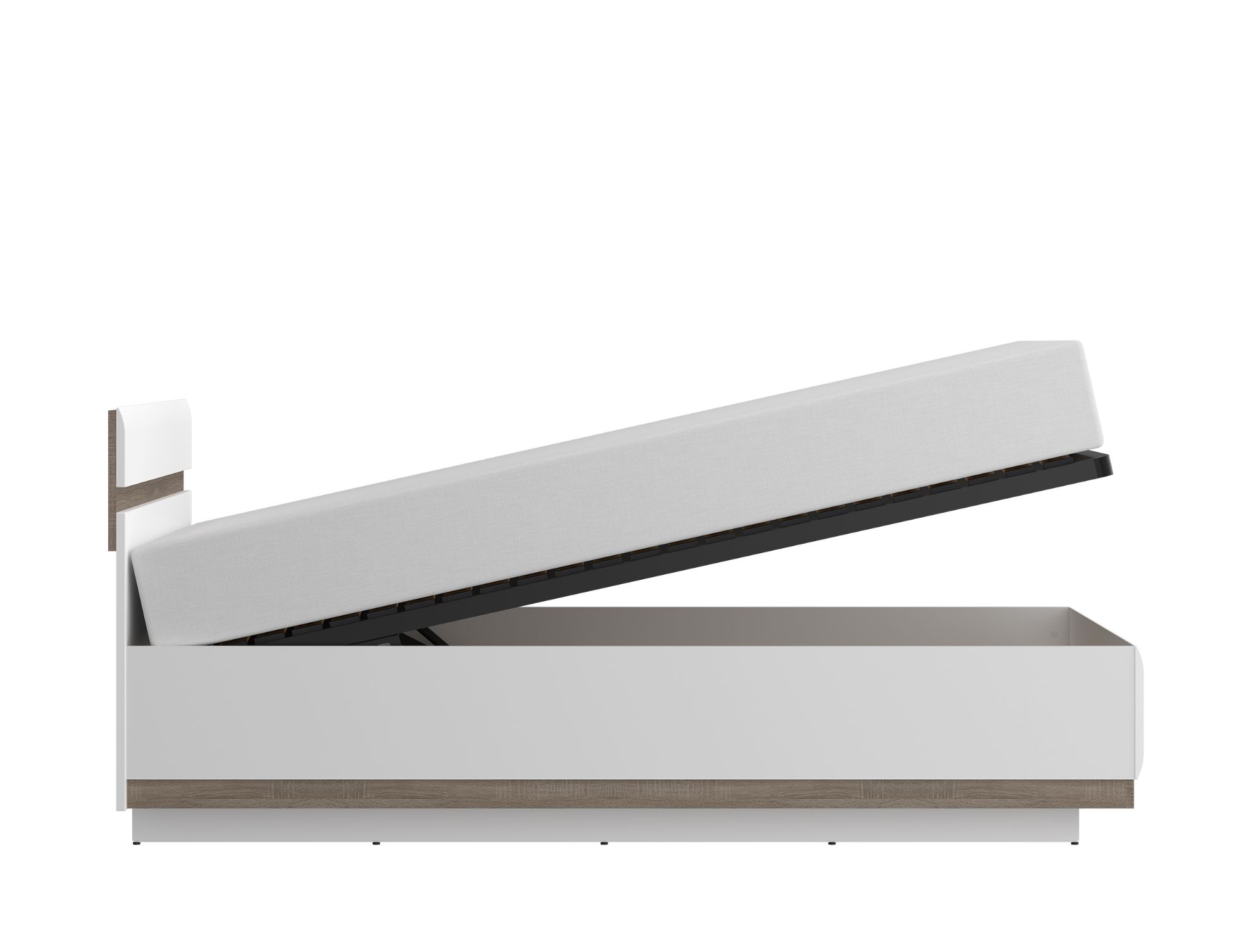 Model Typ 97 został zaprojektowany z myślą o maksymalnym wykorzystaniu przestrzeni. Pod całą powierzchnią spania znajduje się pojemny schowek na pościel, który znakomicie sprawdzi się do przechowywania koców, poduszek czy sezonowej odzieży. Dzięki zastosowaniu gazowych podnośników, dostęp do pojemnika jest prosty i bezpieczny – mechanizm działa płynnie, bez opadania i bez konieczności użycia dużej siły.